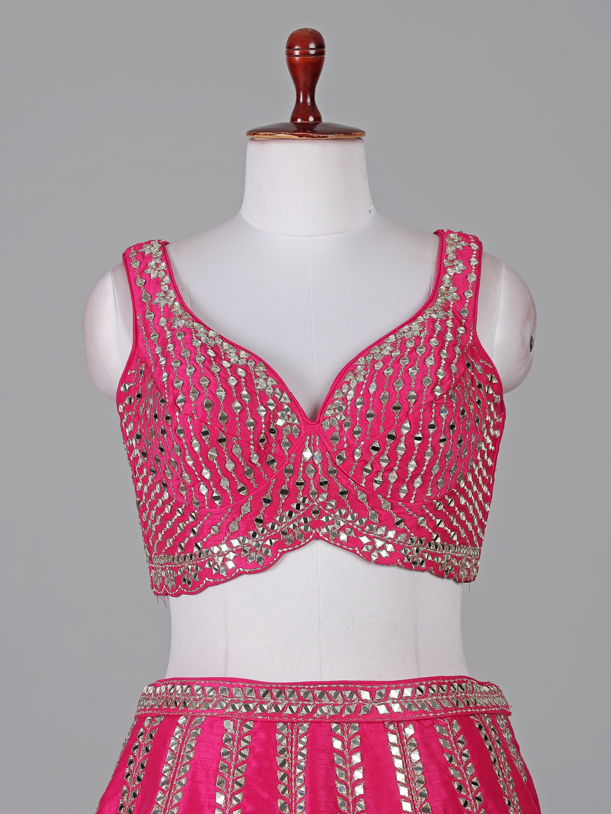Magenta Raw Silk Aabla Work Designer Lehenga Choli