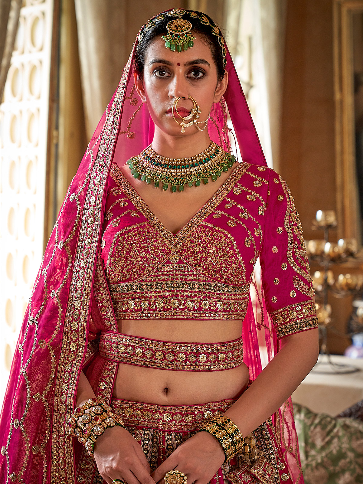 Magenta Silk Bridal Lehenga With Sequins Embellishment