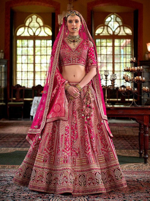 Magenta Silk Bridal Lehenga With Sequins Work For Women