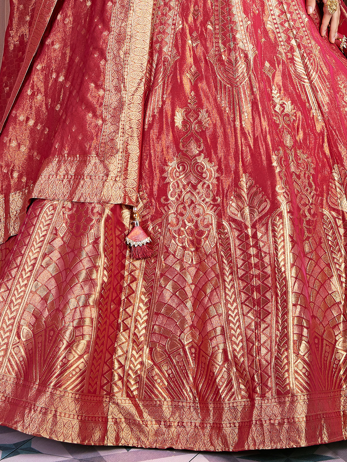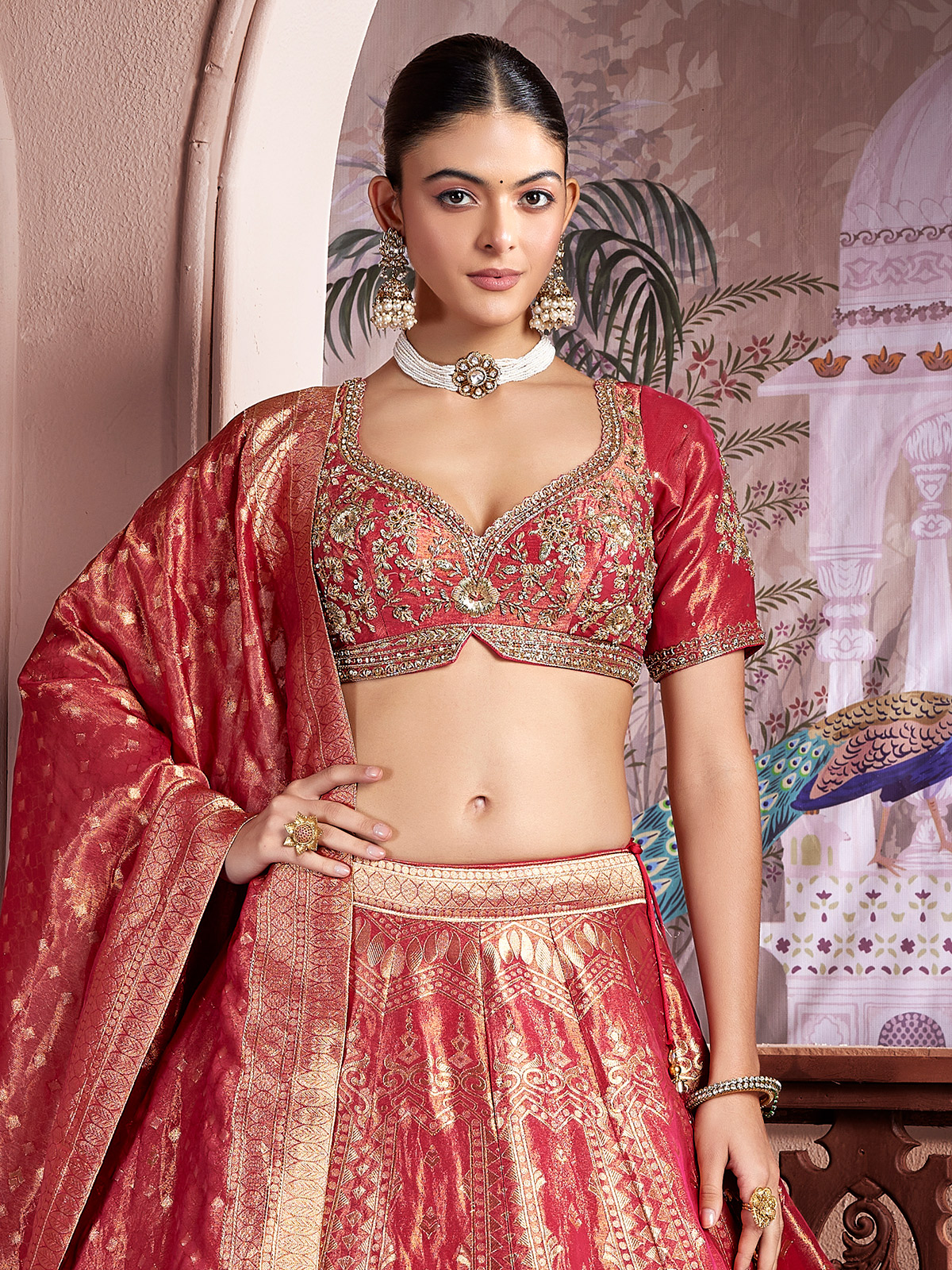Maroon Banarasi Silk Sweetheart Neck Lehenga Choli