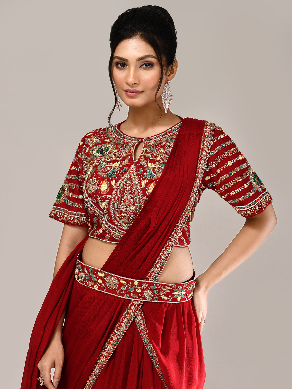 Maroon Silk Keyhole Style Designer Lehenga Choli