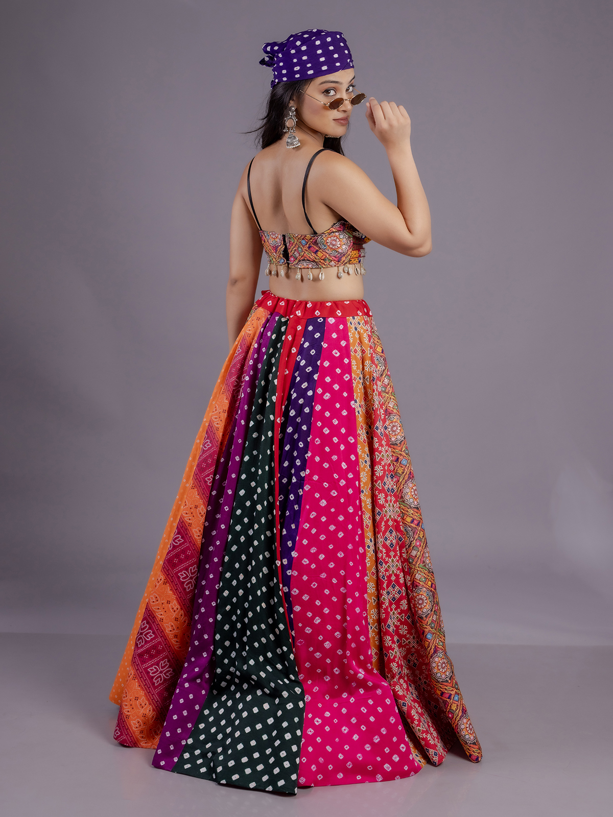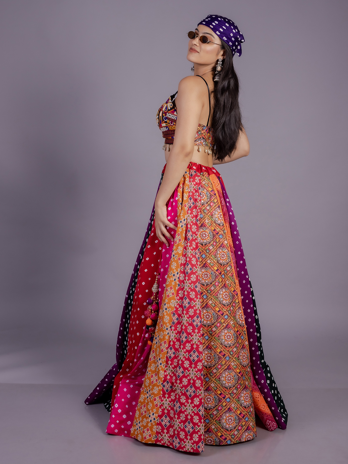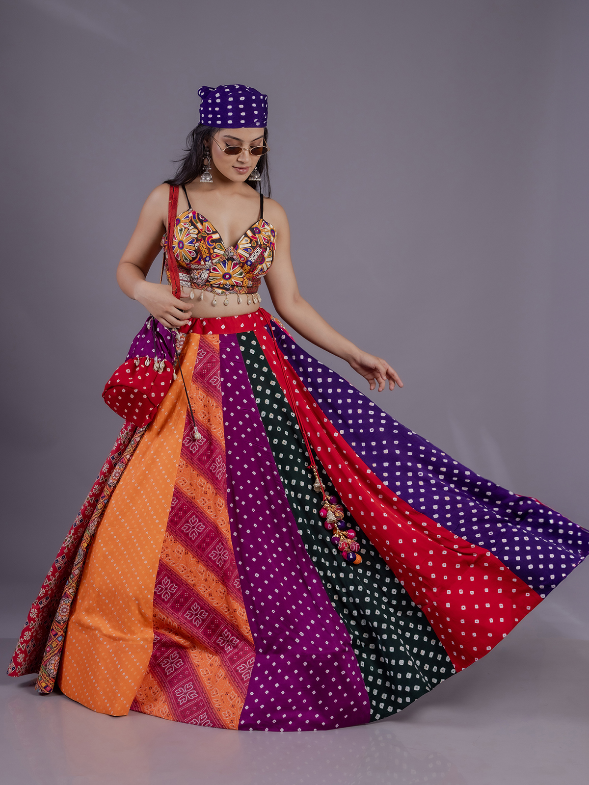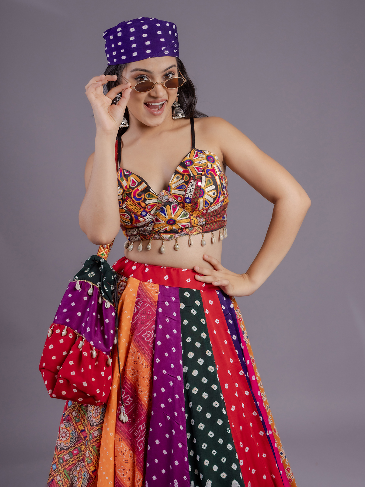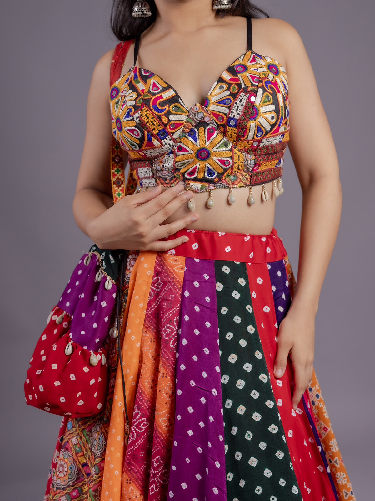 Mirror Embellished Multicolor Silk Lehenga Choli