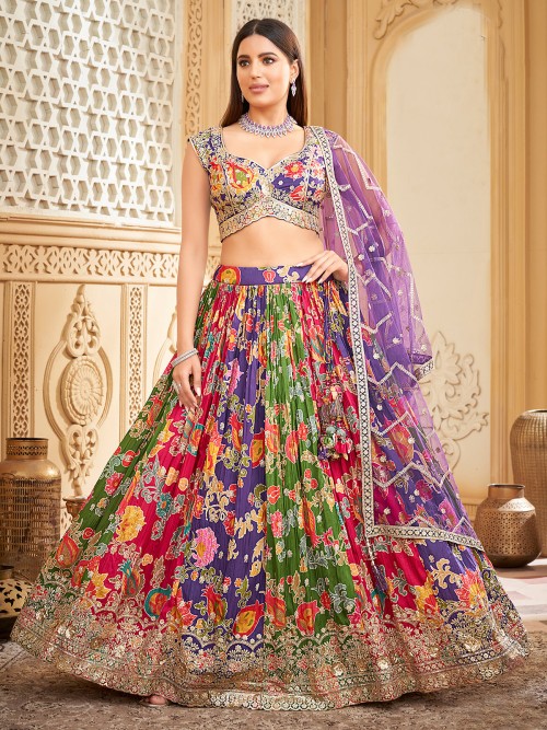 Multi Color Silk Resham Embroidered Lehenga Choli
