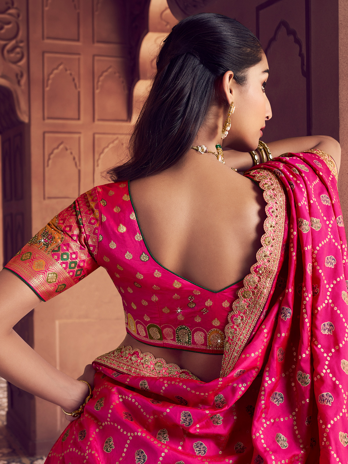 Created for women who embrace vibrant tradition with modern sparkle, this rich multicolor Banarasi silk unstitched lehenga choli brings celebratory elegance to life. Detailed with shimmering zari, resham, sequins, and swarovski work, it showcases festive grandeur and charm. Ideal for weddings and sangeet events, it is paired with an unstitched blouse and a beautifully coordinated dupatta.