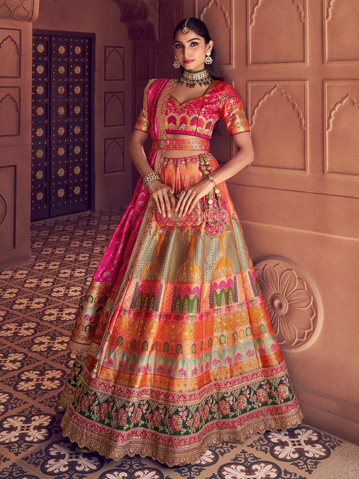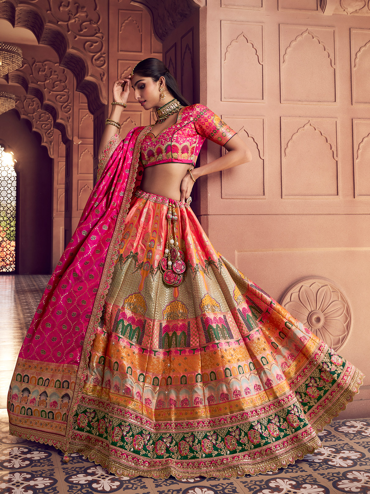 Multicolor Banarasi Silk Lehenga Choli Adorned With Zari Work