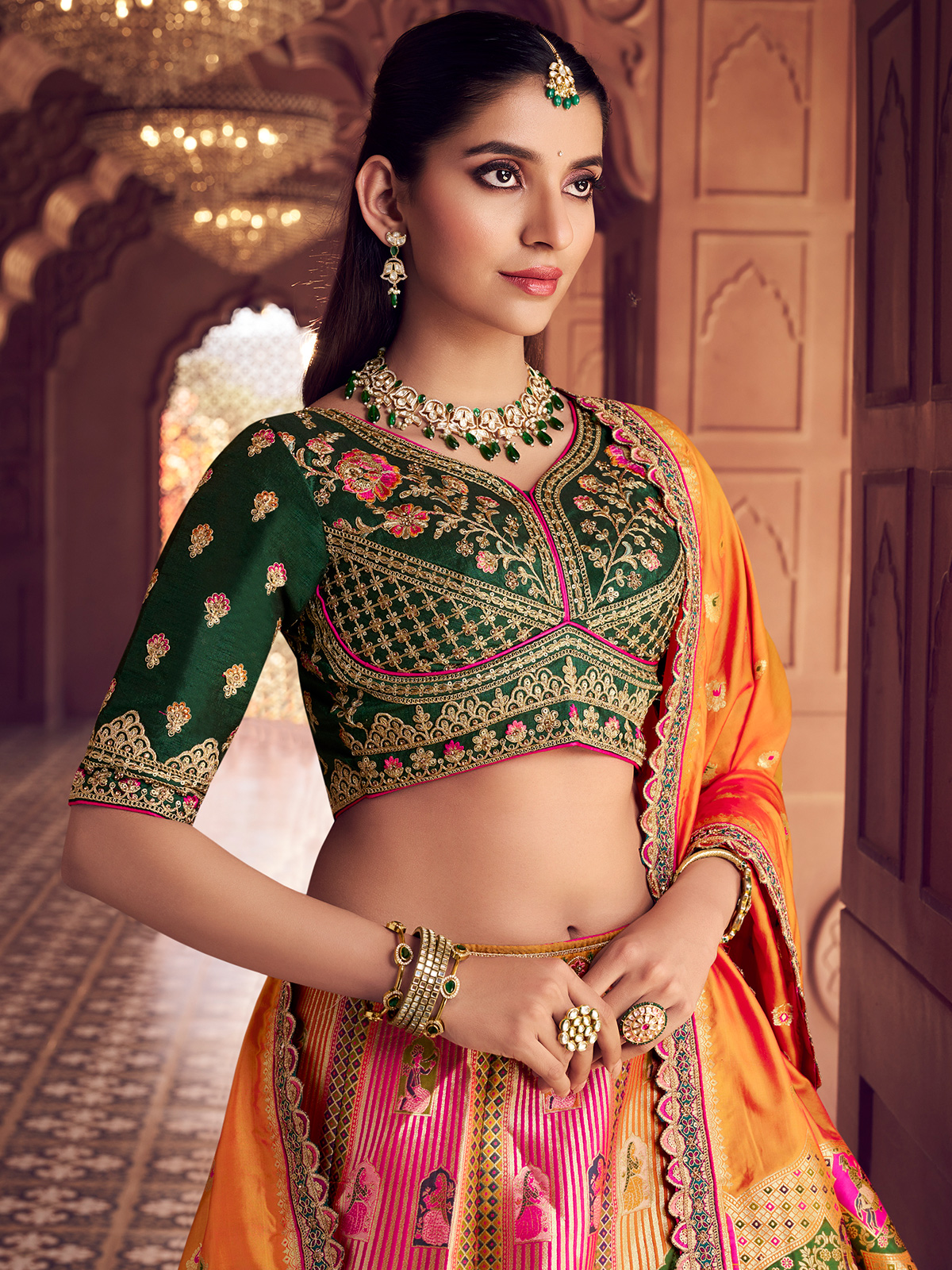 Multicolor Bridal Banarasi Silk Lehenga Choli With Traditional Weave