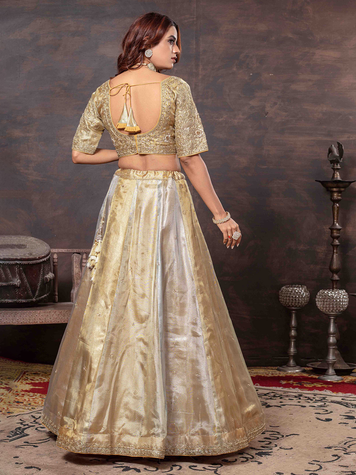 Multicolor Heavy Weaving Tissue Silk Lehenga Choli