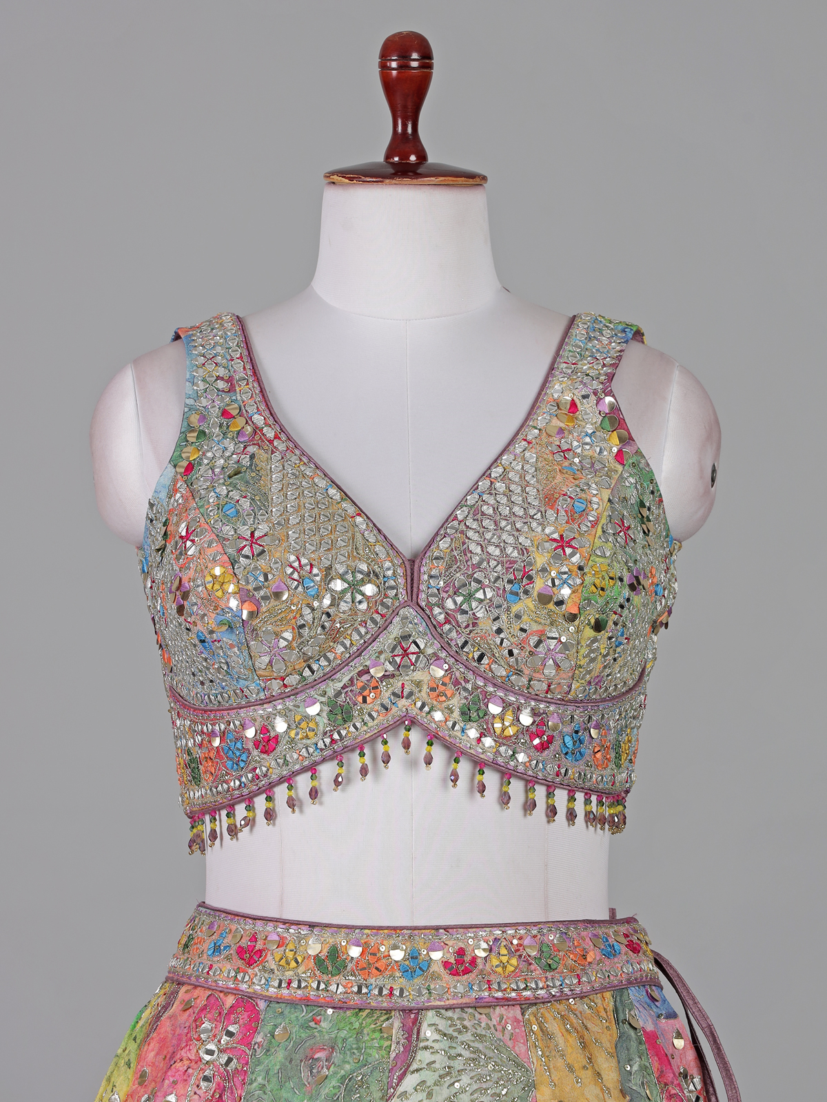 Multicolor Silk Aabla Work Designer Lehenga Choli