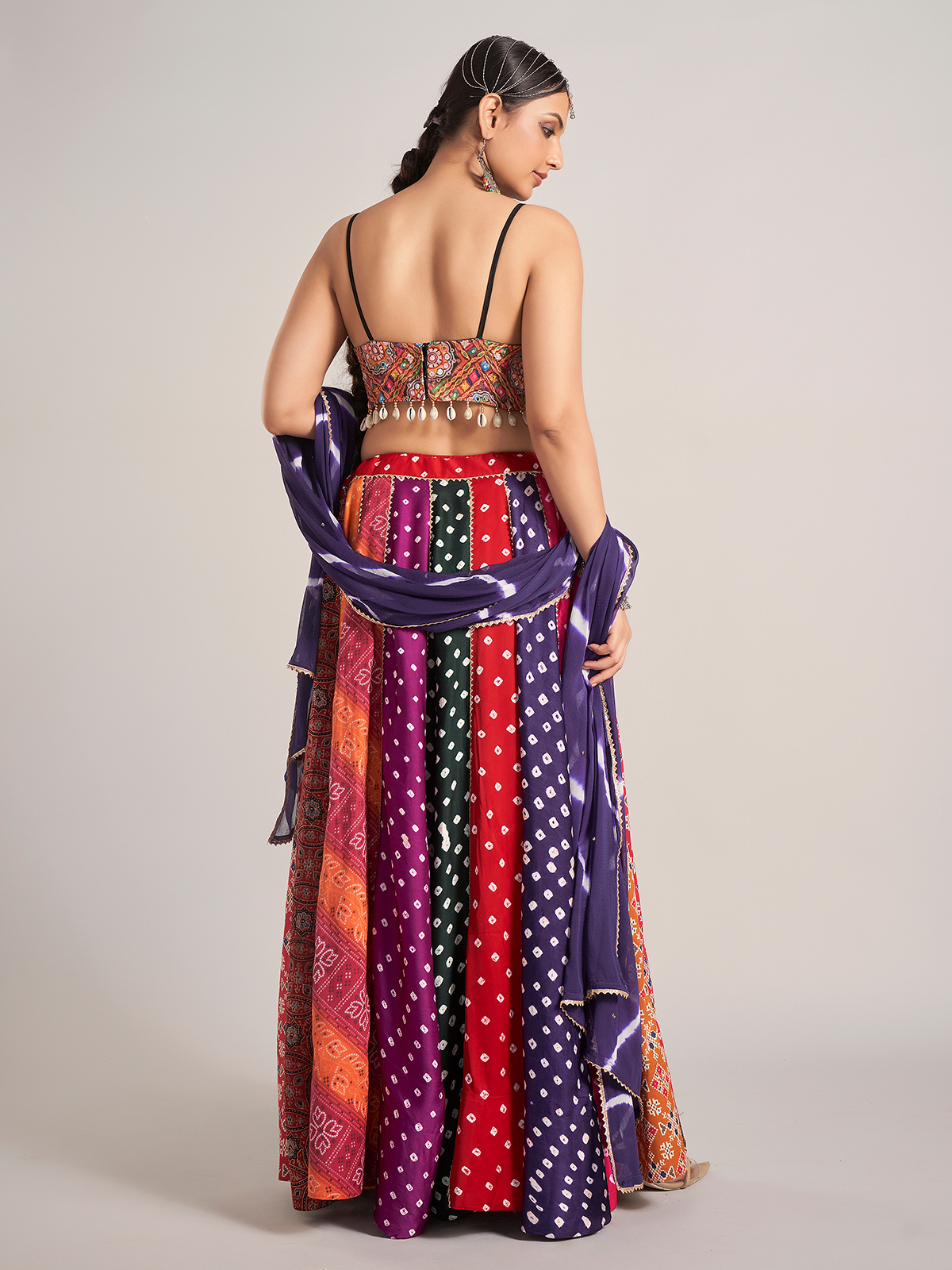 Multicolor Silk Cowrie Shell Navratri Chaniya Choli
