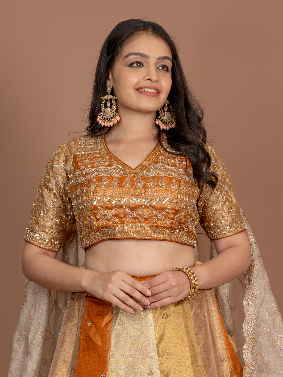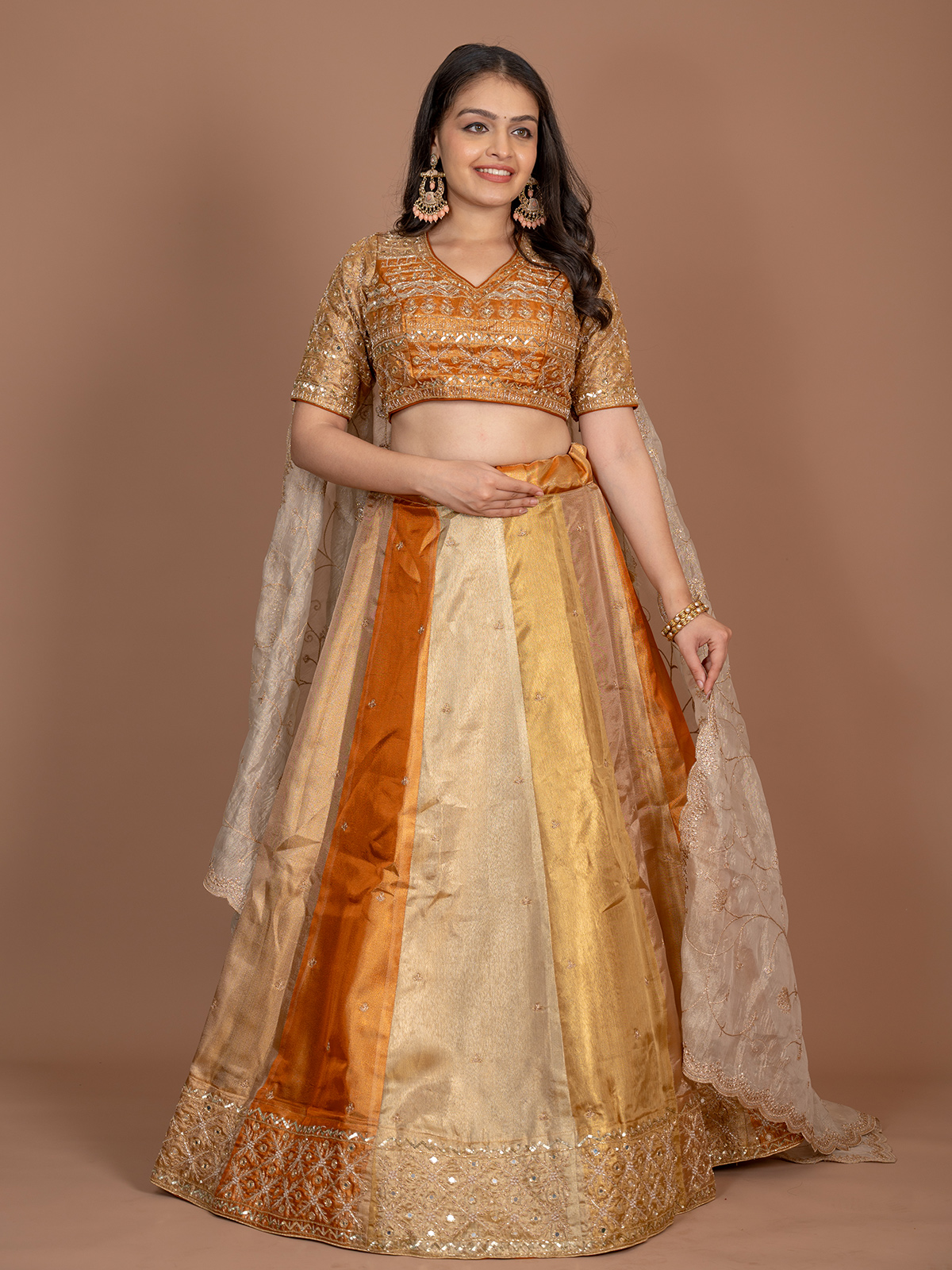 Multicolor Tissue Silk Lehenga Choli With Artistic Mirror Work