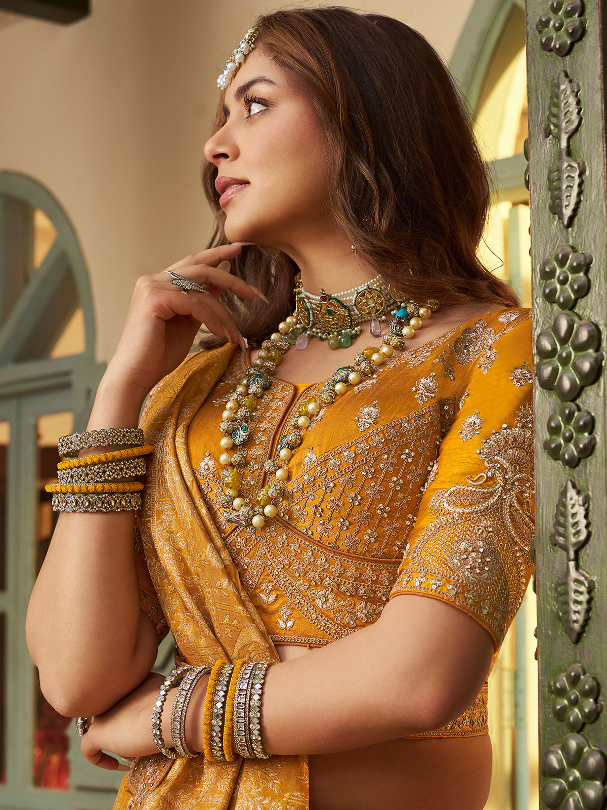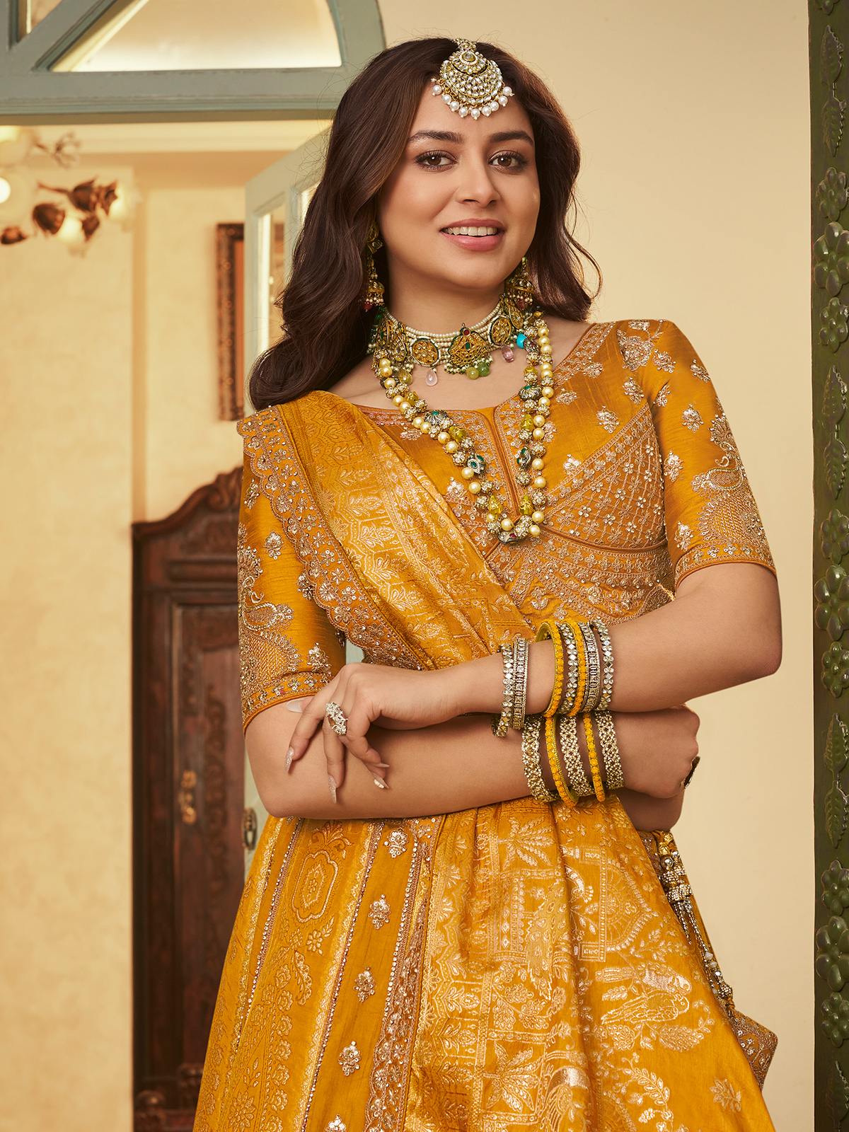 Mustard Yellow Radiant Zari Swarovski Haldi Couture
