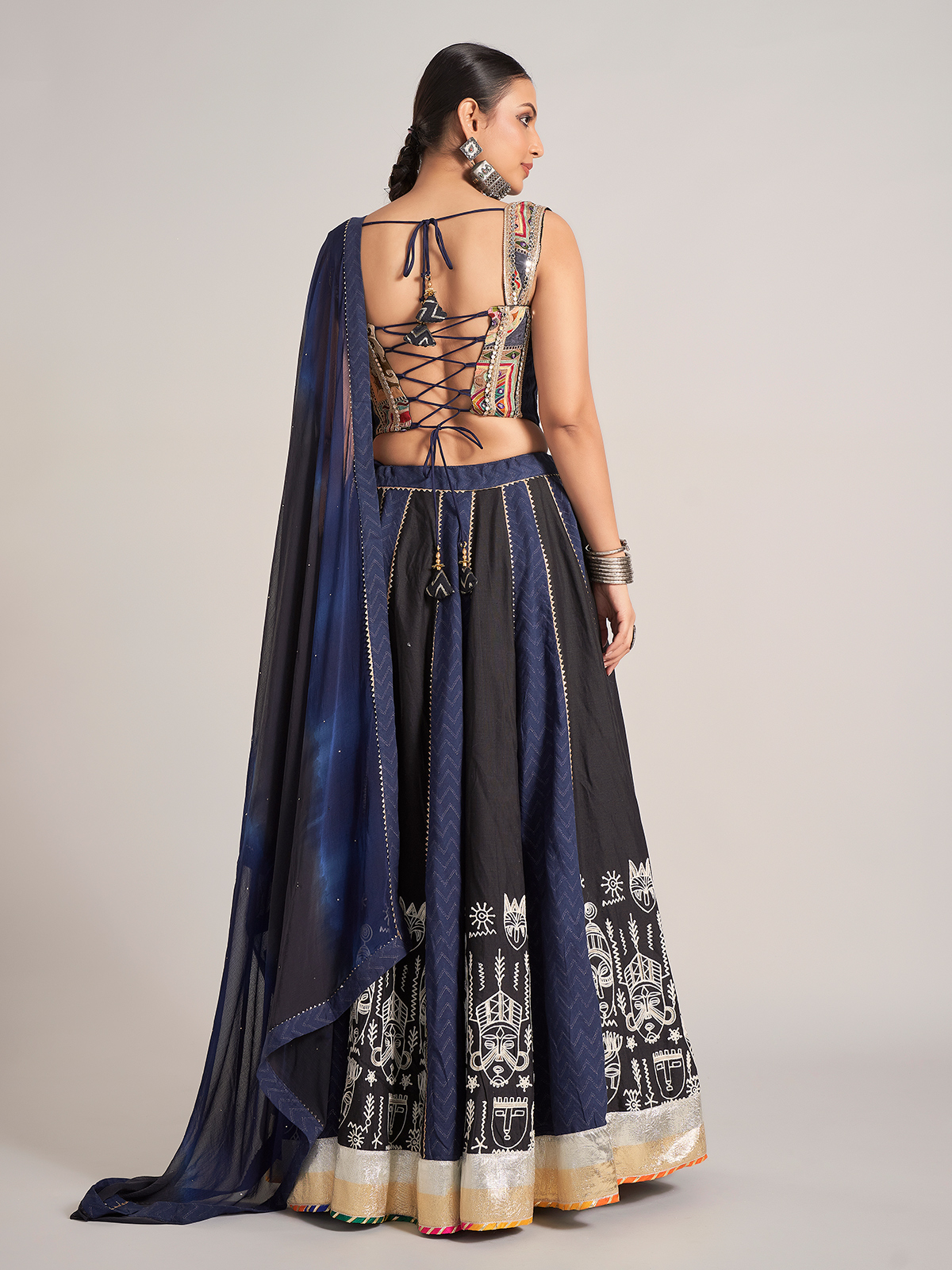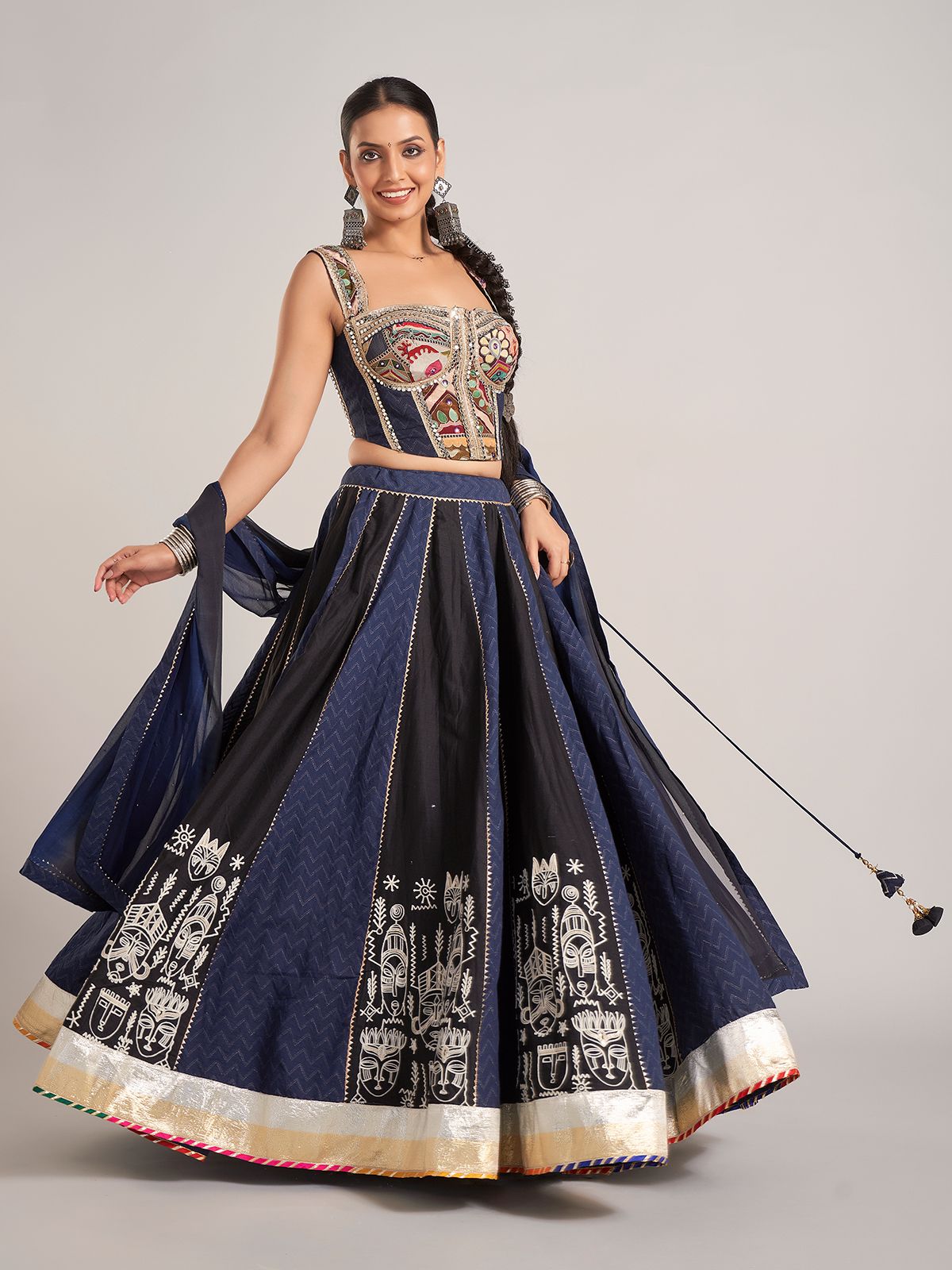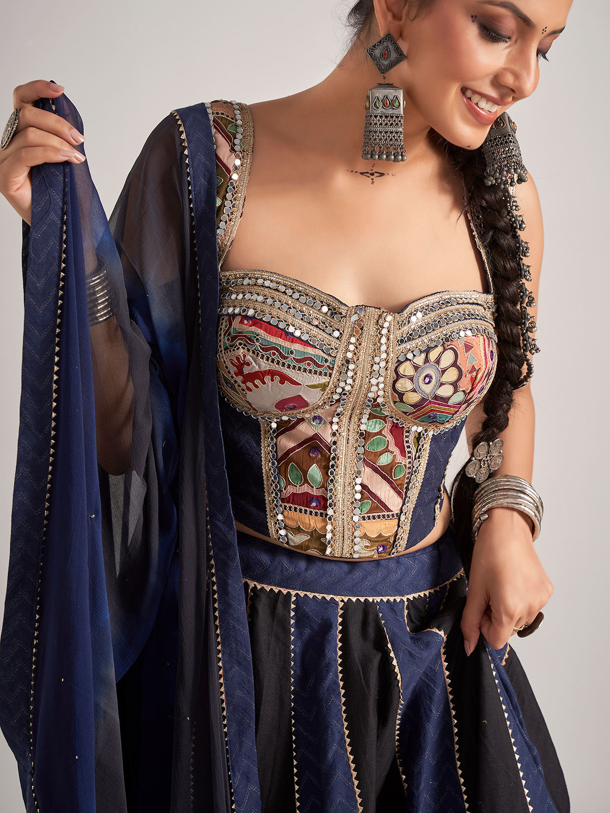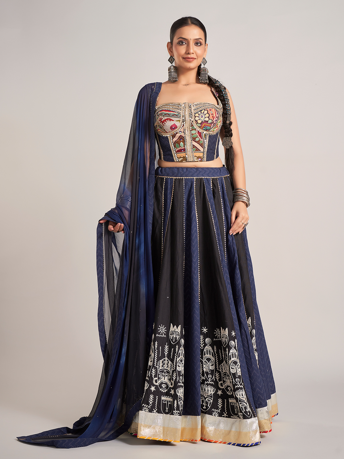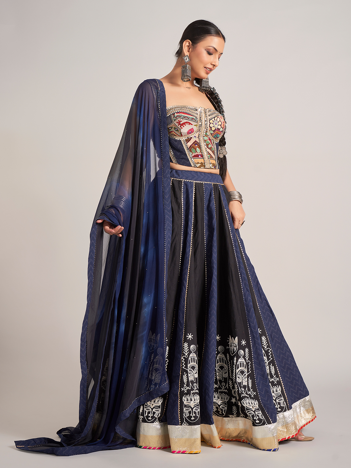 Delicate light pink net lehenga choli featuring pearls, sequins, and cutdana highlights. Its square neckline and sleeveless style offer a chic edge. Paired with a soft dupatta, perfect for receptions and bridal soirees.