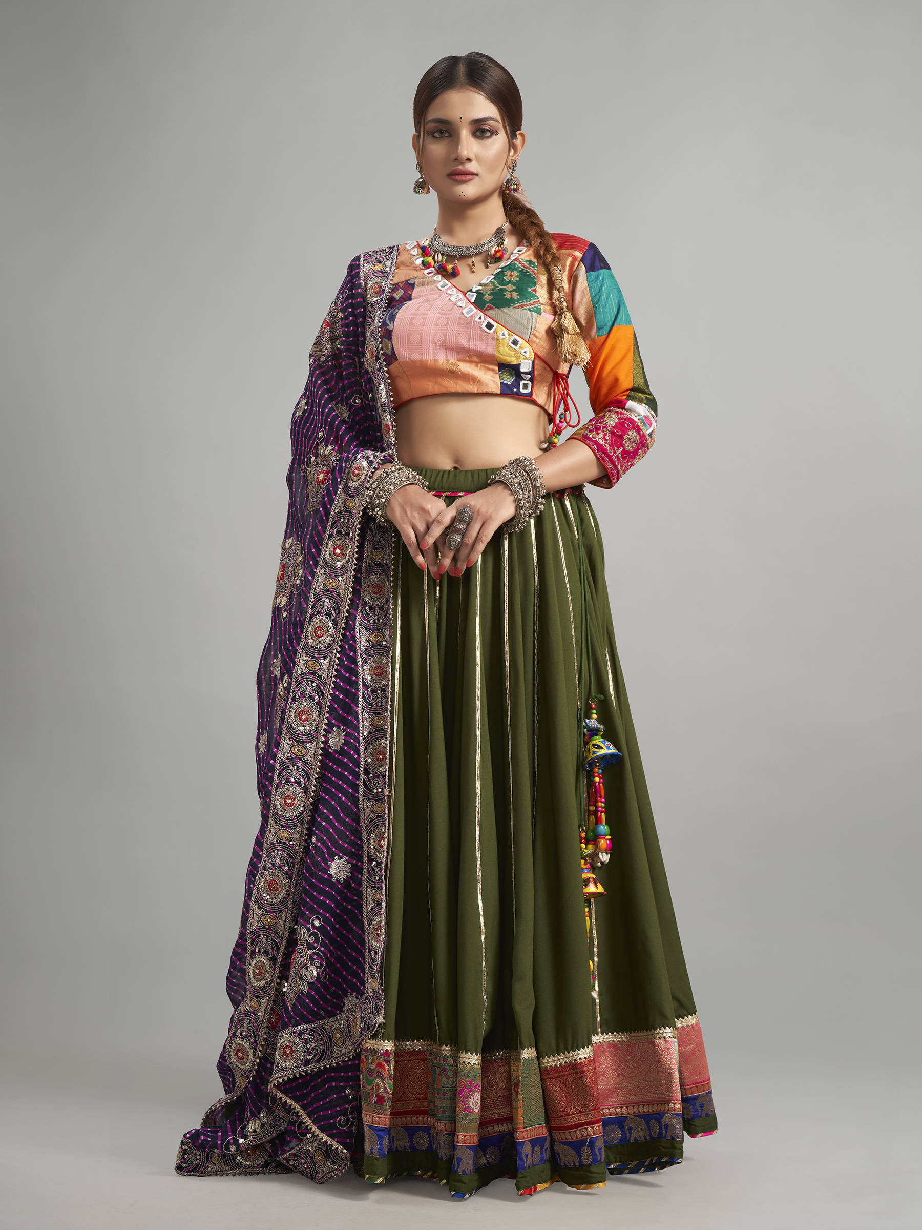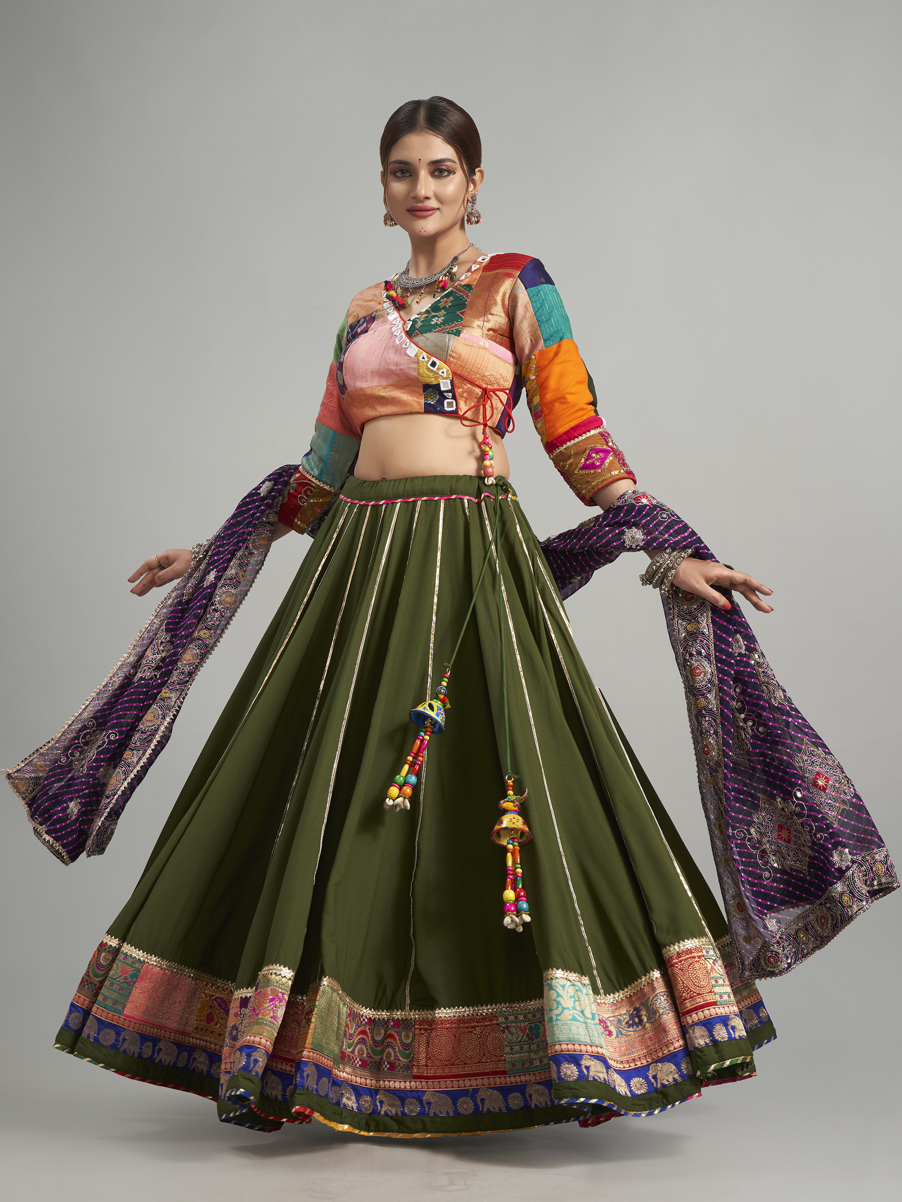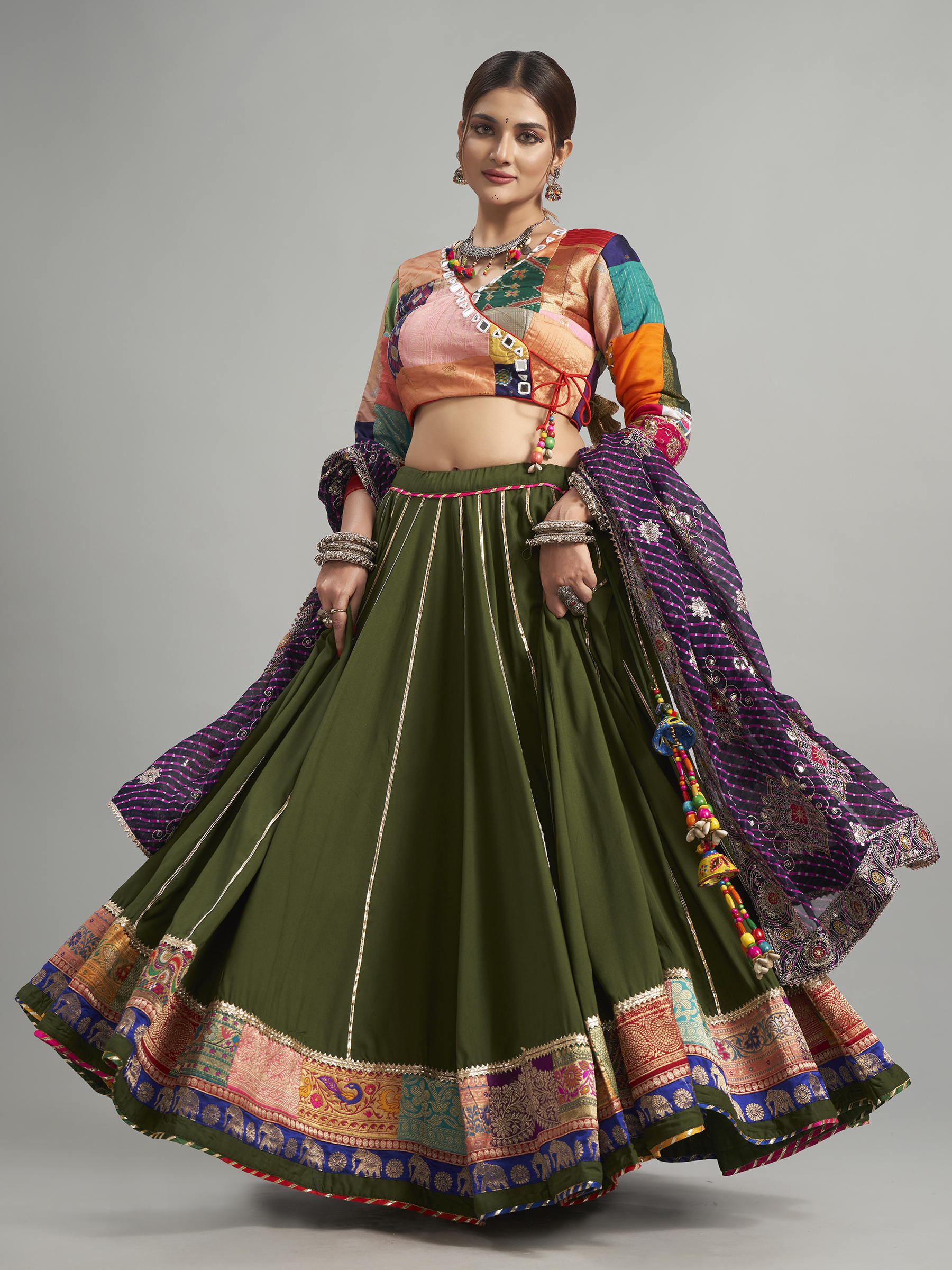 Olive Cotton Silk Chaniya Choli