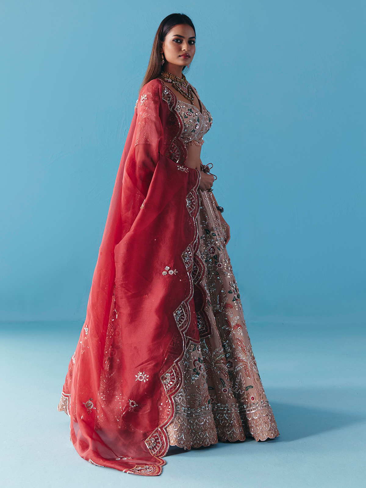 Onion Pink Silk Lehenga With Threaded Diamond Shine