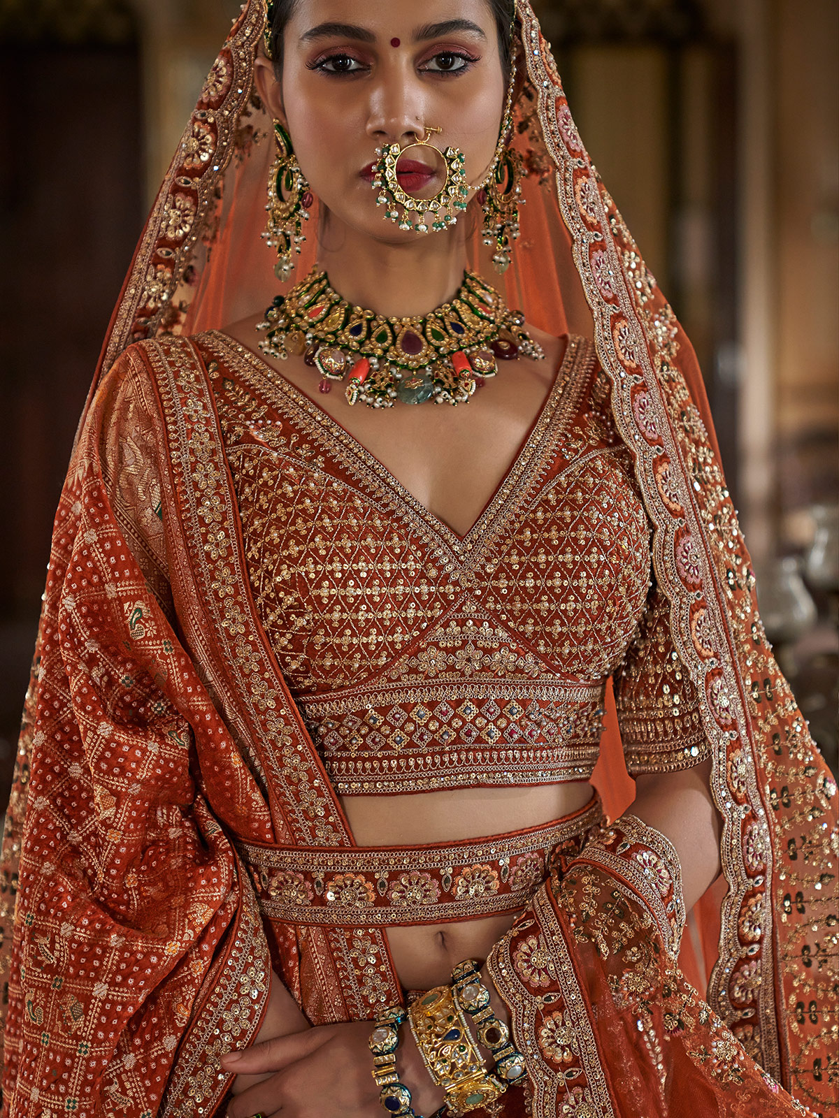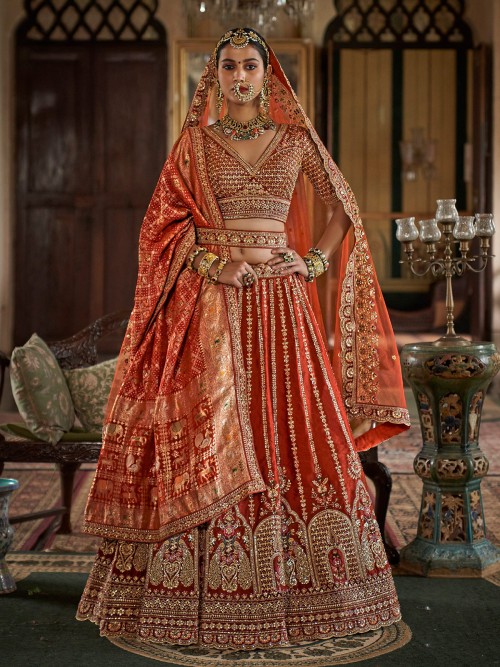Orange Silk Bridal Lehenga Choli For Elegant Wedding Look