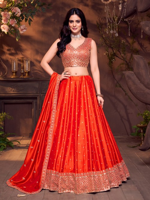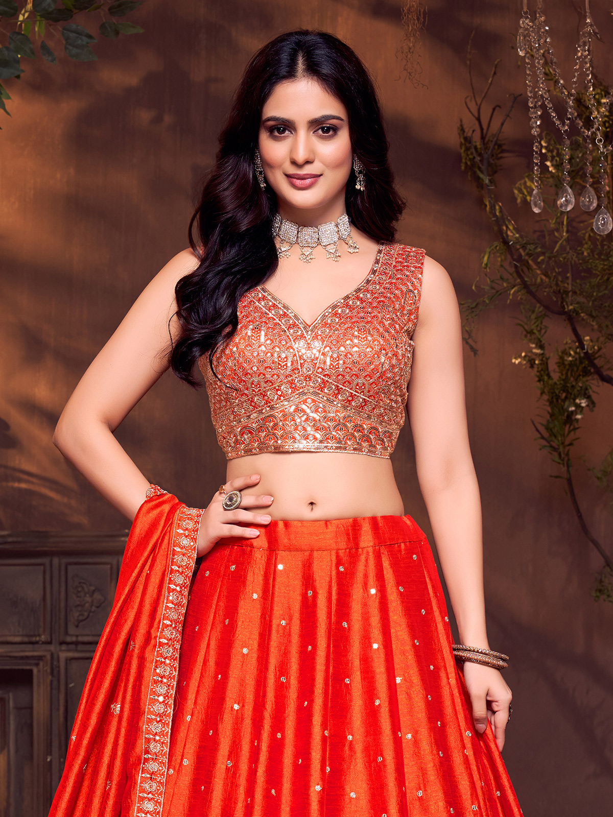 Orange Silk Sweetheart Neck Festive Lehenga Choli