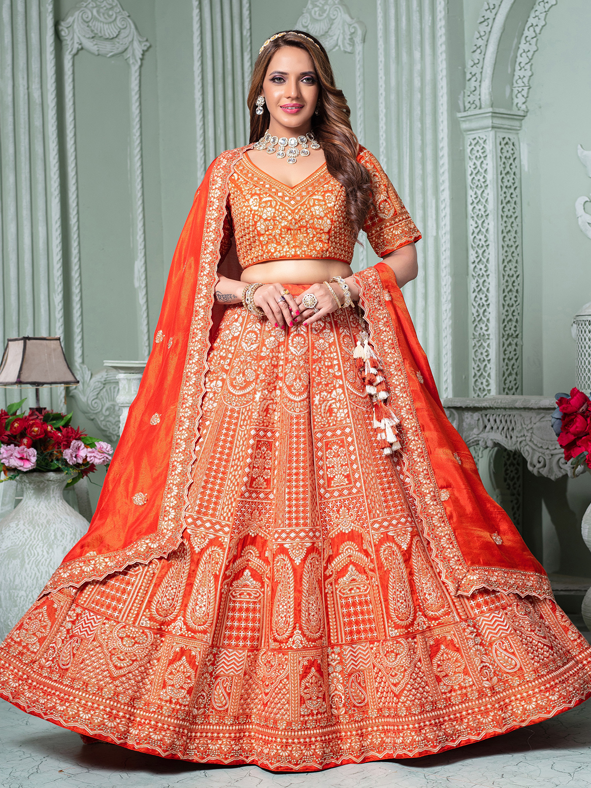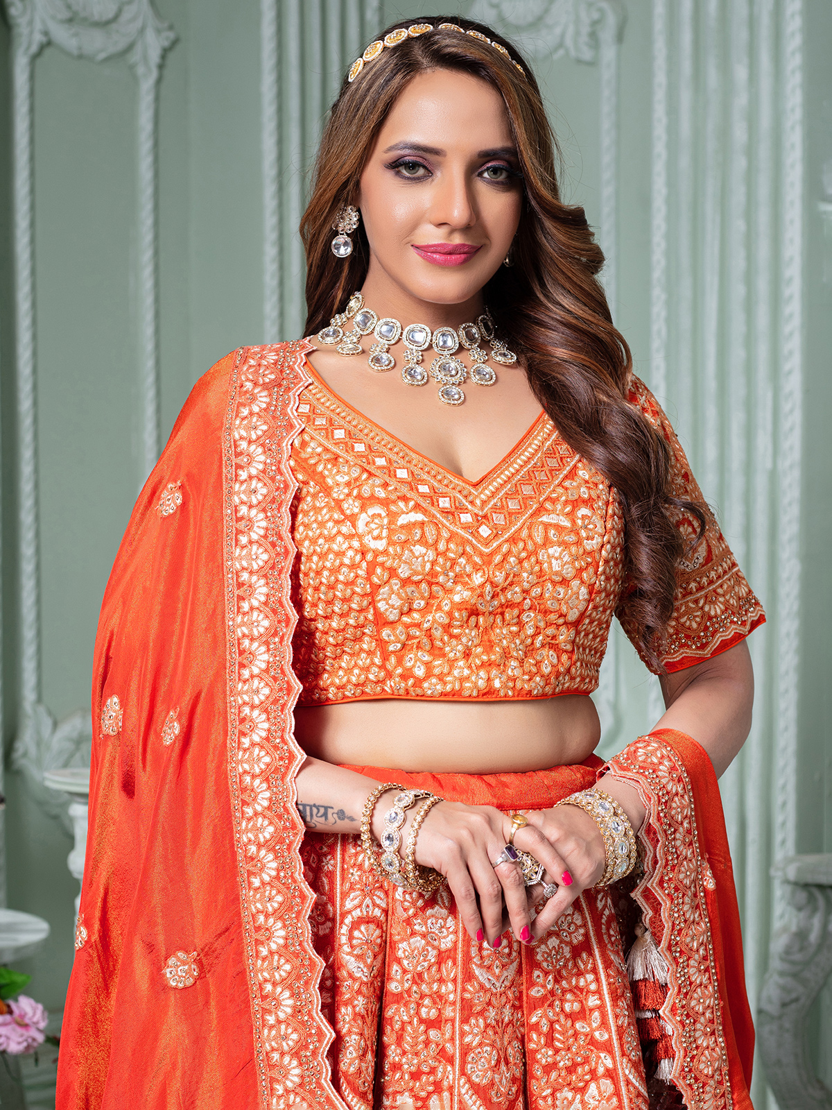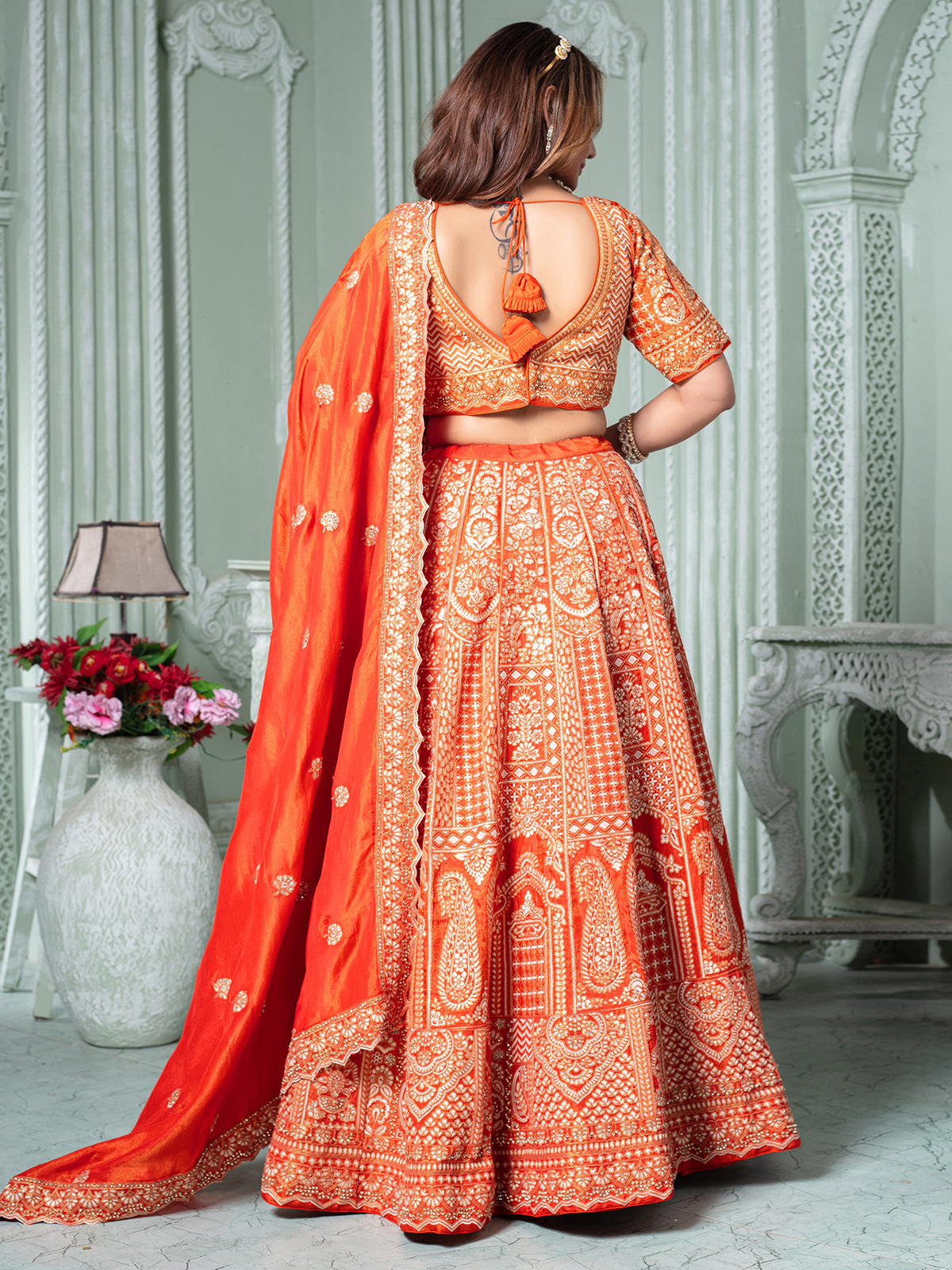 Orange Tissue Silk Lehenga Choli For Wedding Celebrations
