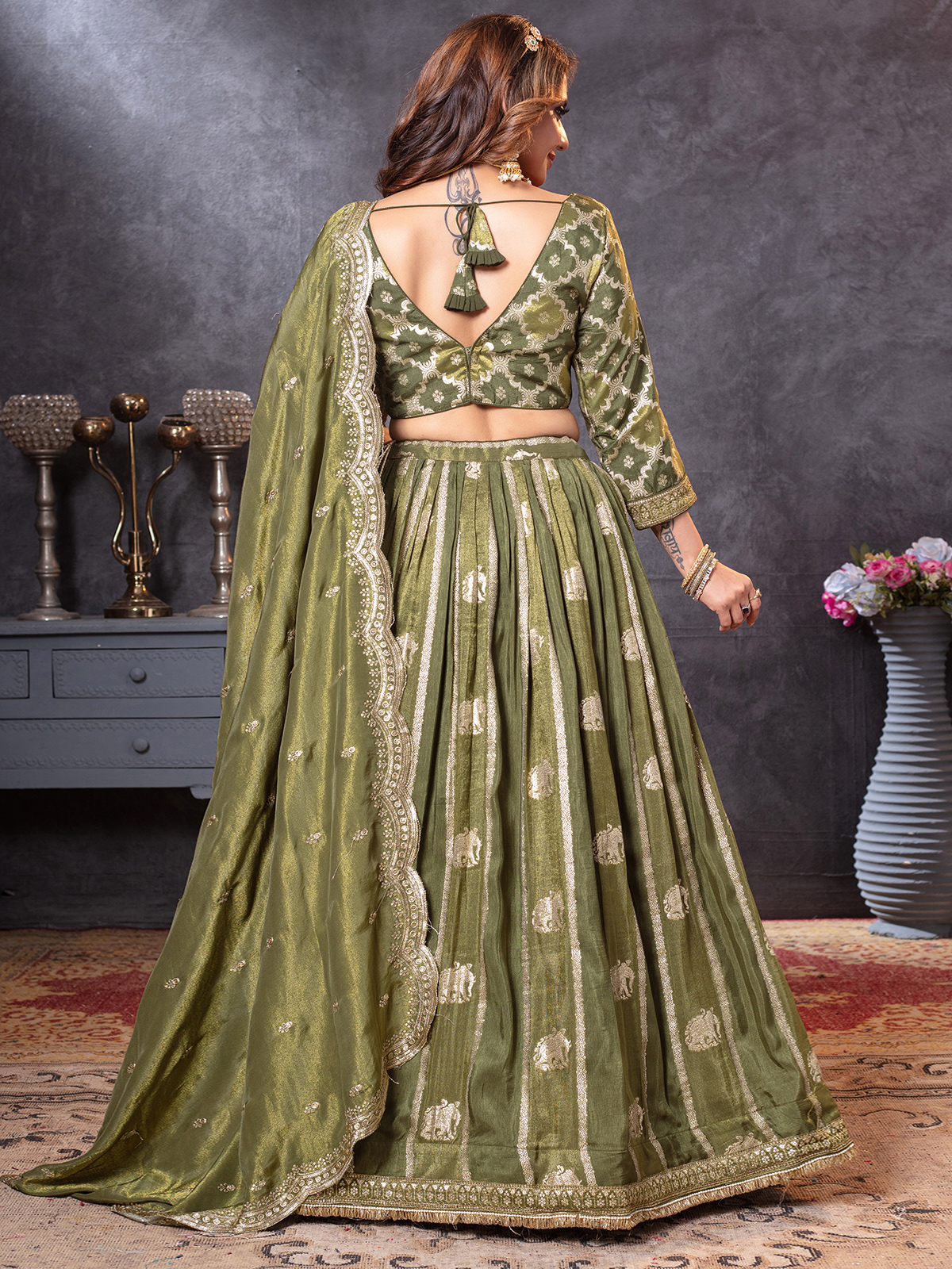 Pastel Green Tissue Silk Lehenga Choli With Quarter Sleeves