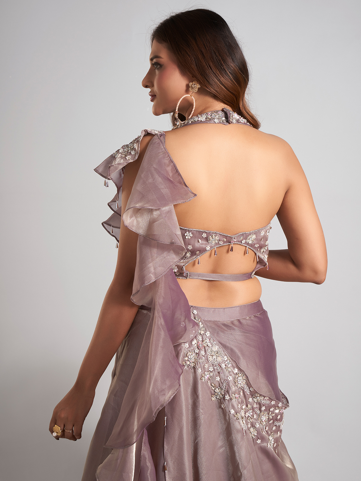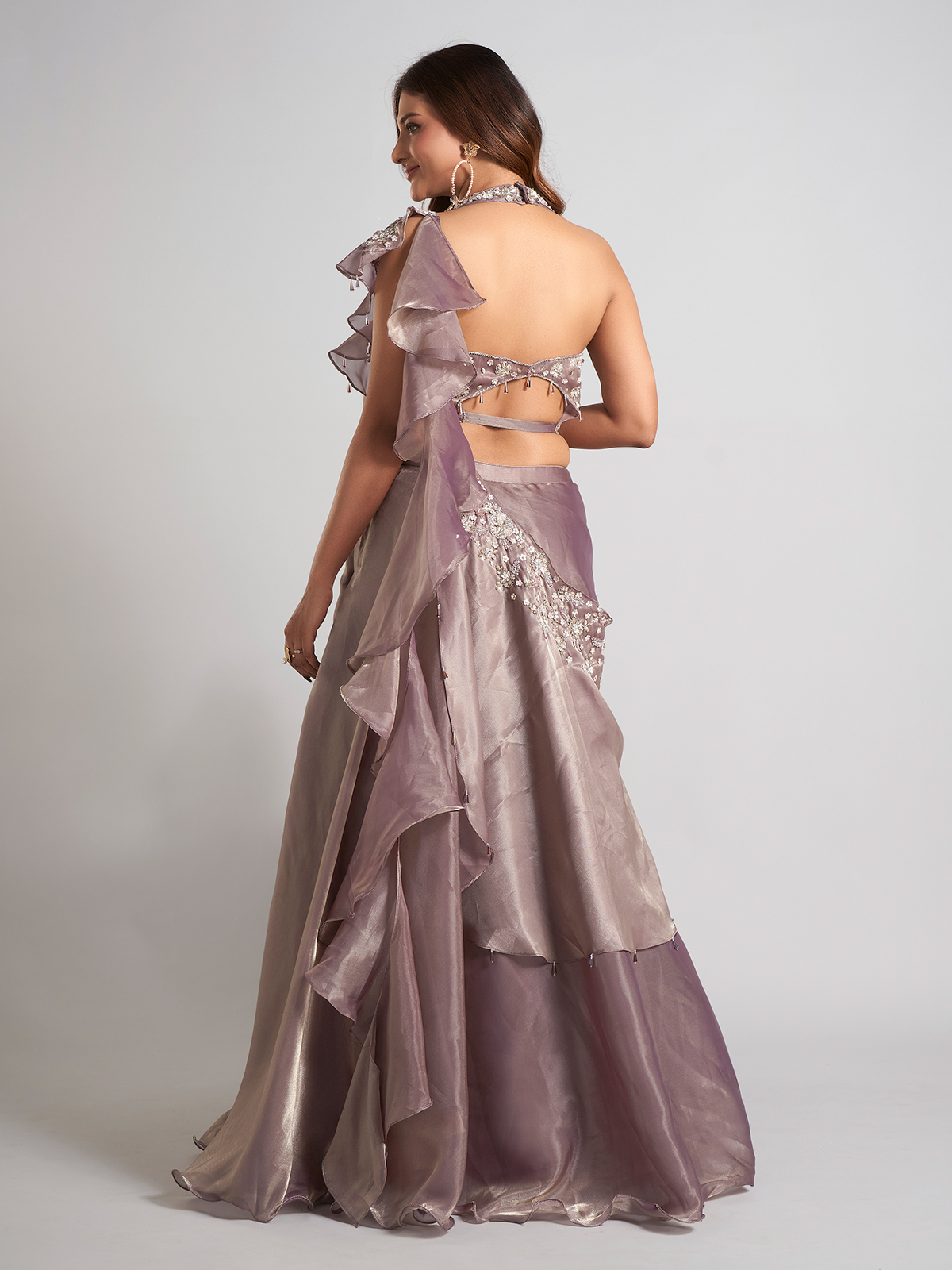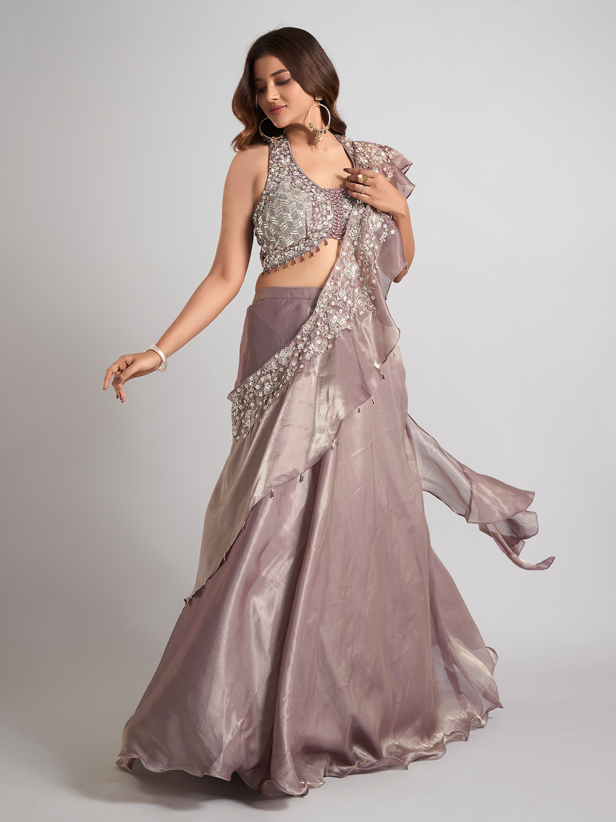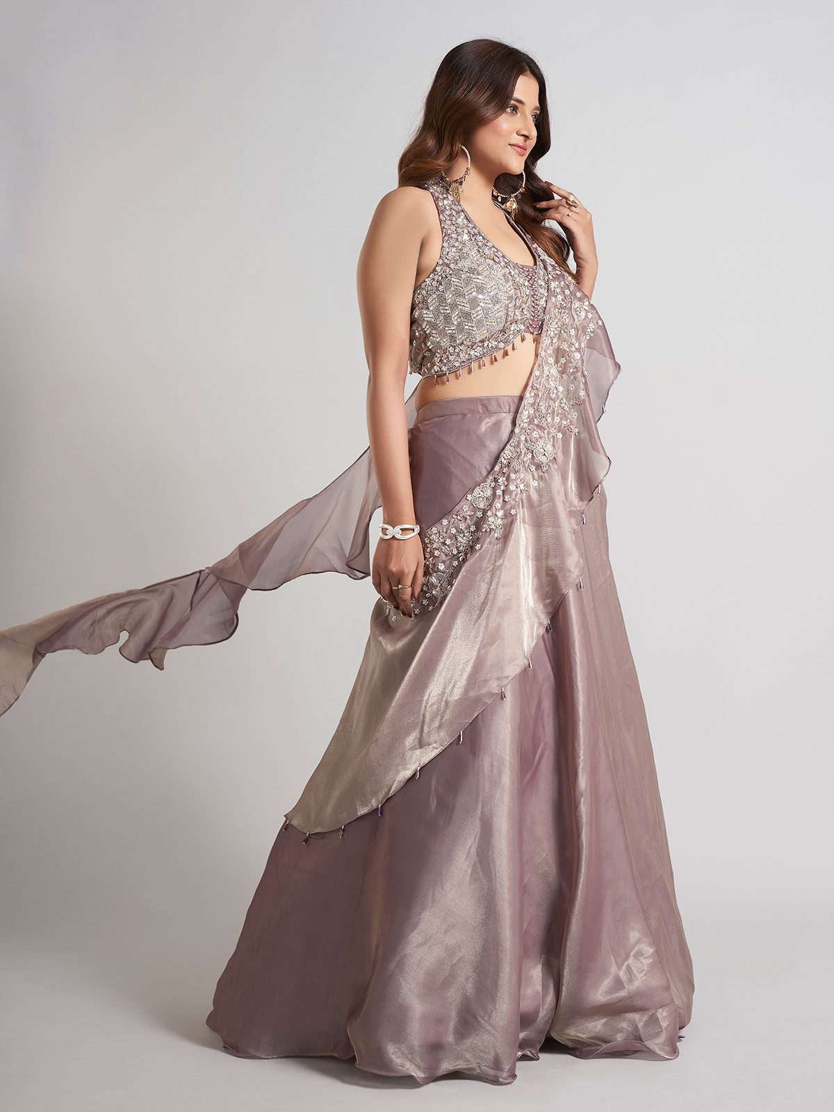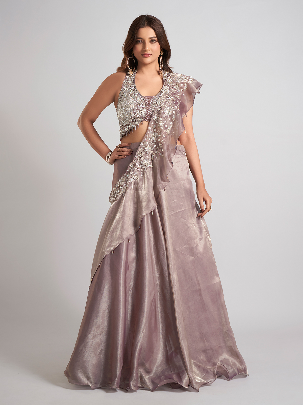 Pastel Purple Tissue Silk Lehenga Choli With Attached Dupatta