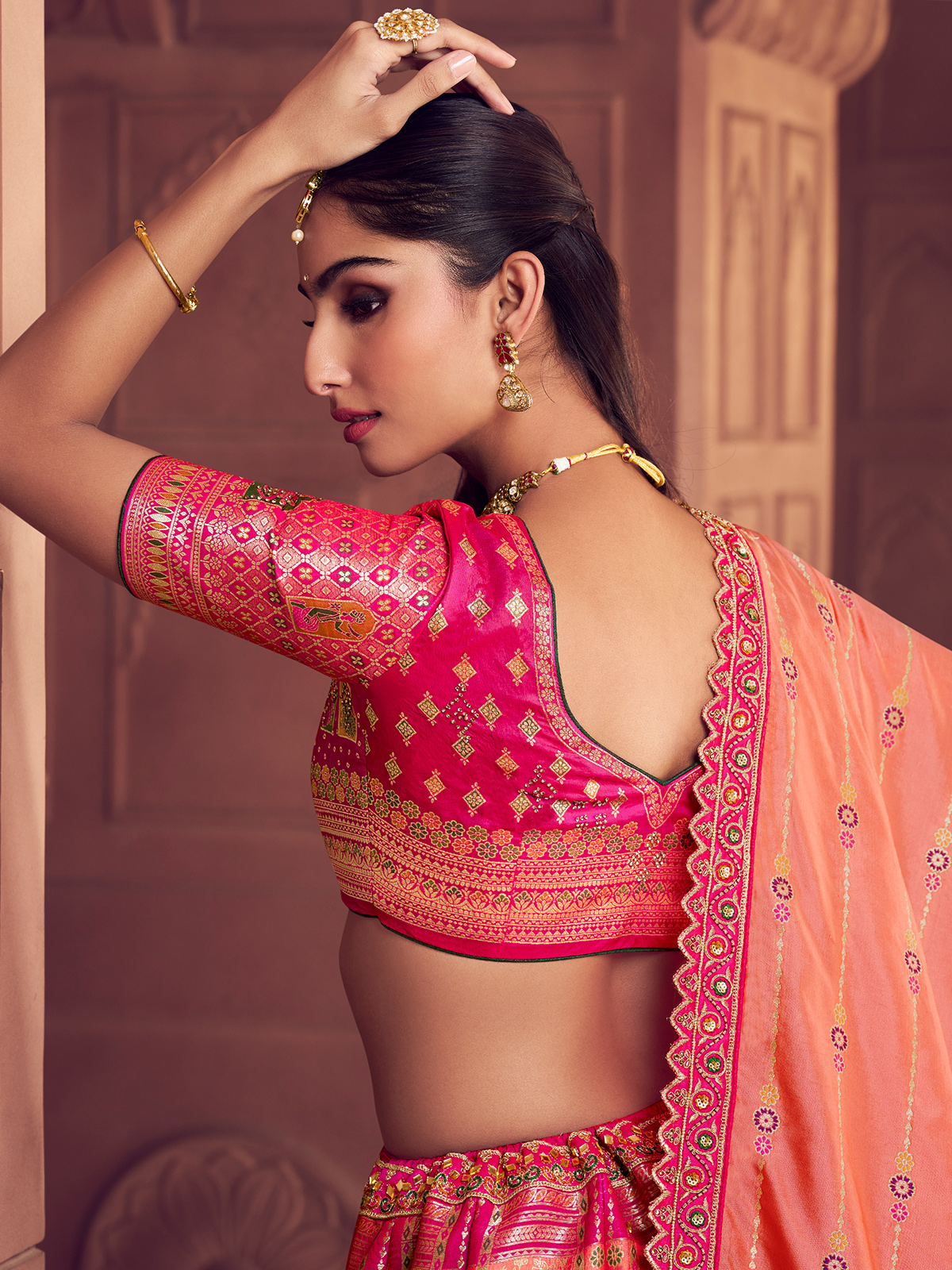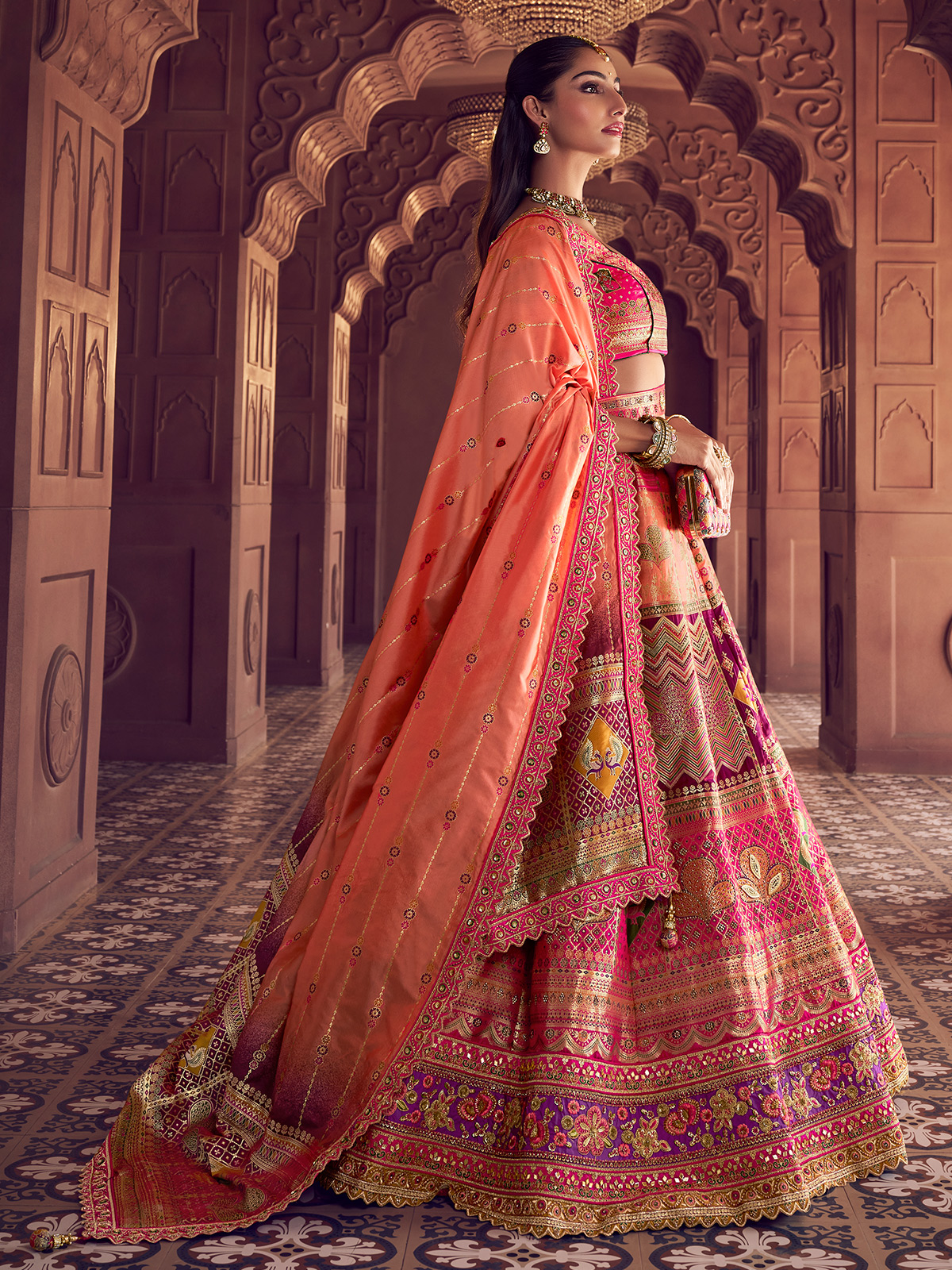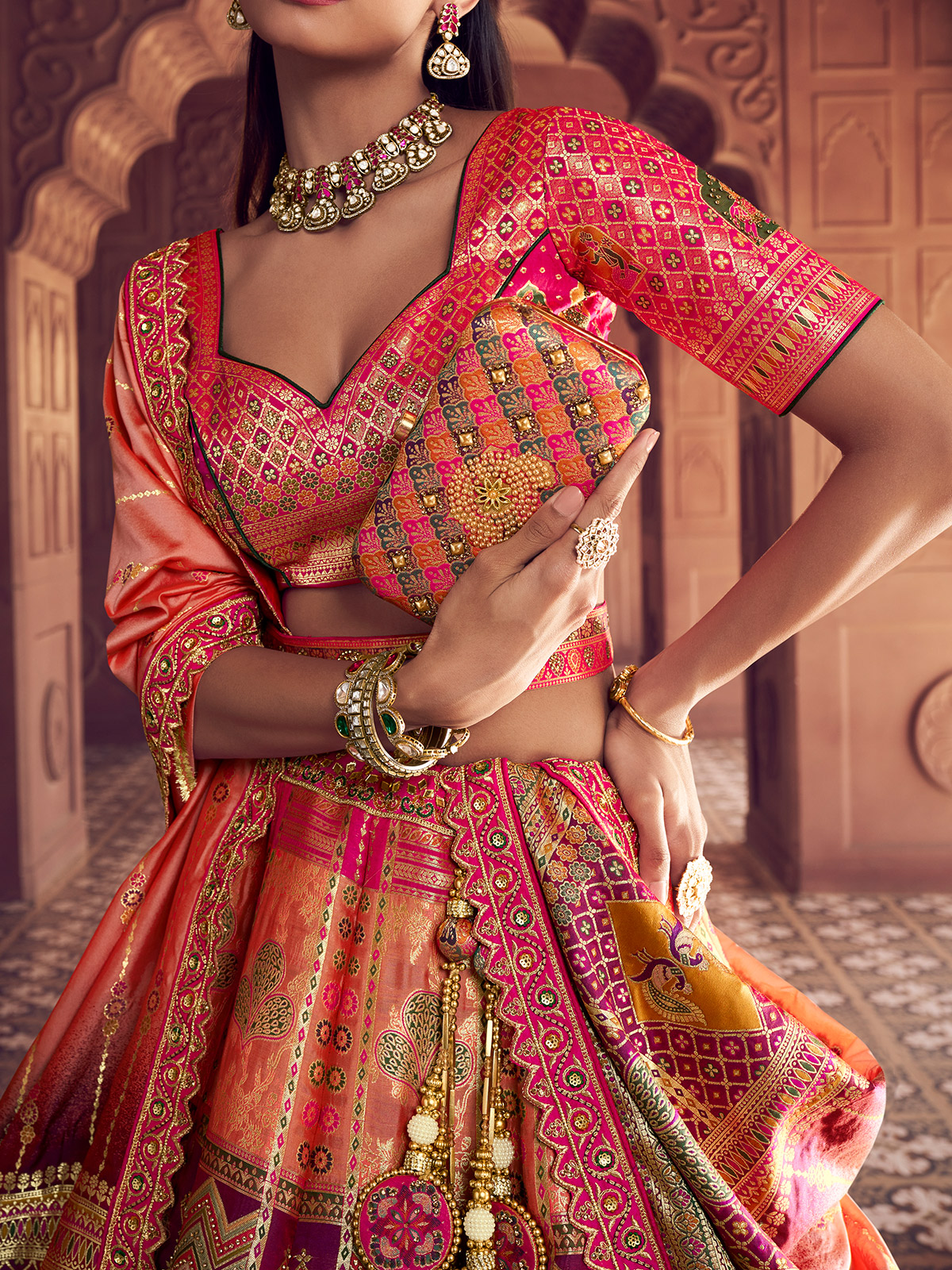 Pink Banarasi Silk Lehenga Choli With Wedding Elegance