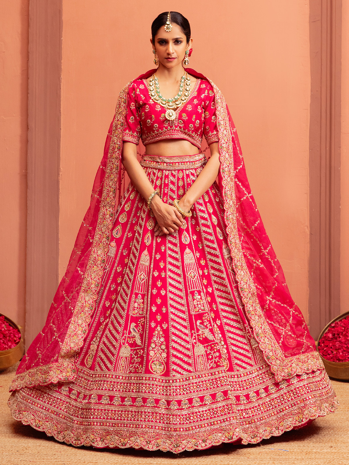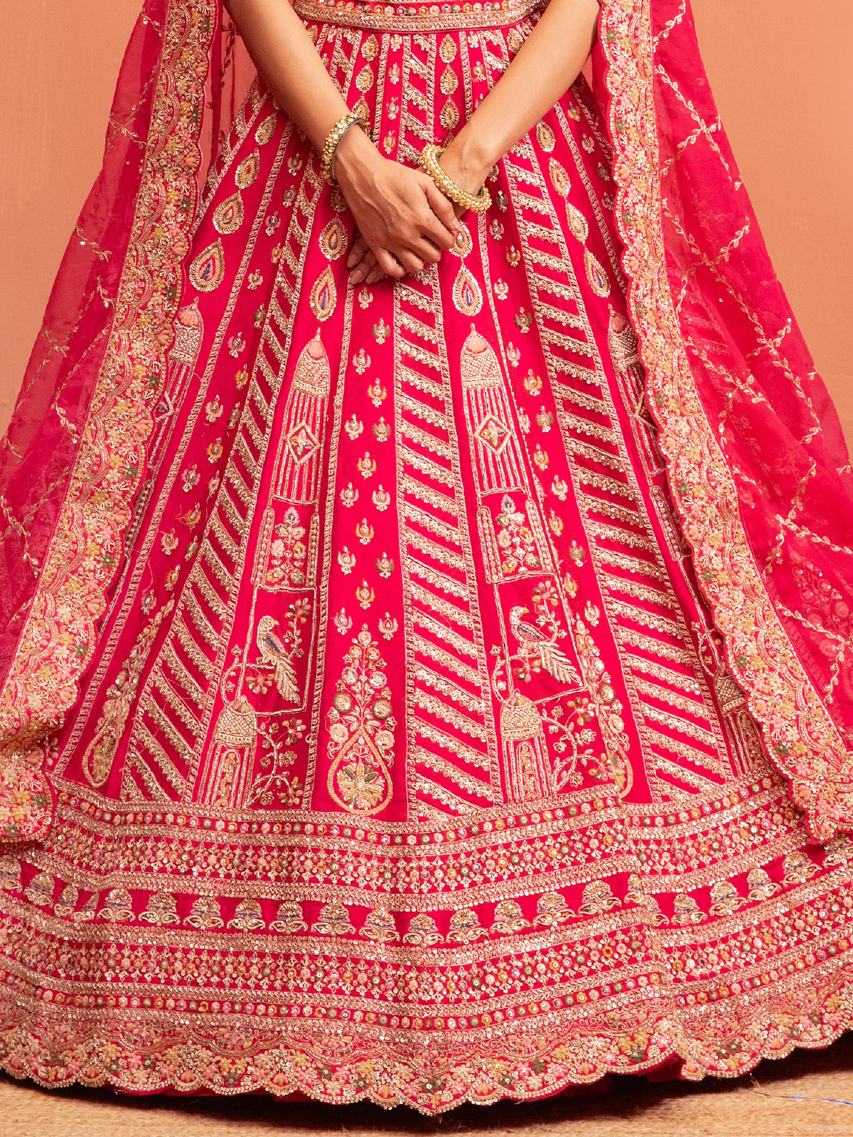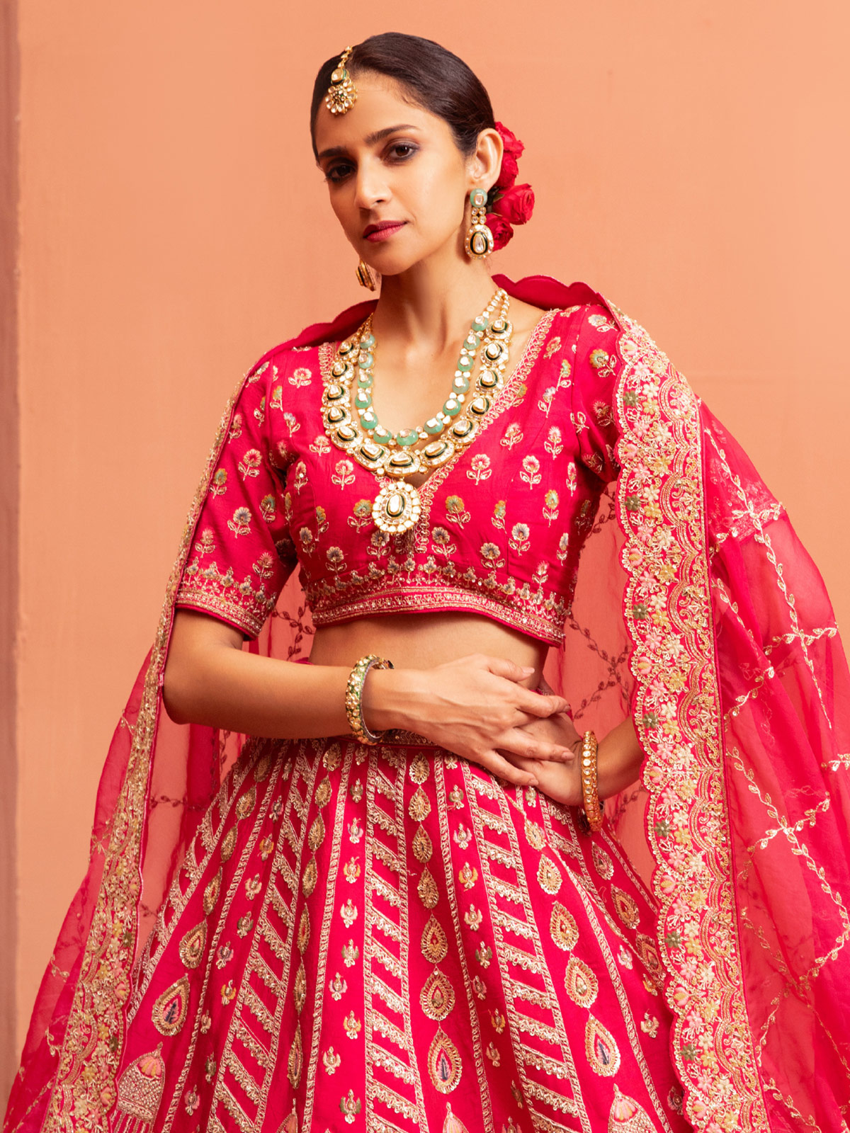 Pink Raw Silk Wedding Lehenga Choli For Women