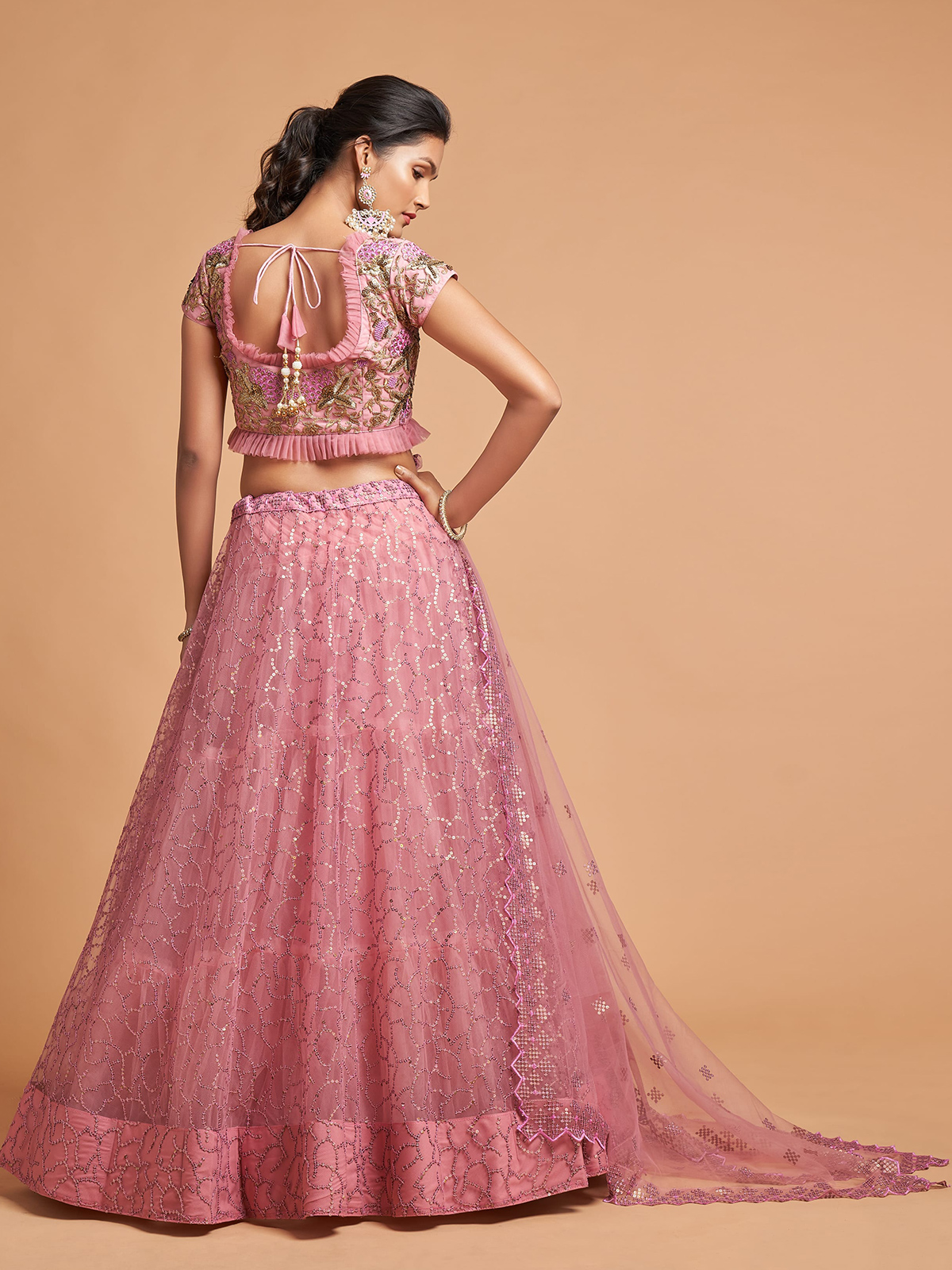 Pink Wedding Wear Lehenga Choli In Soft Net