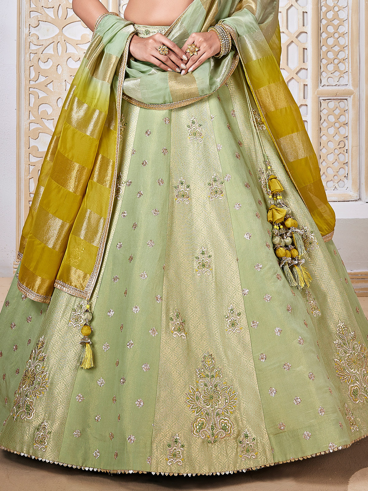 Pista Green Zari Work Designer Lehenga Choli