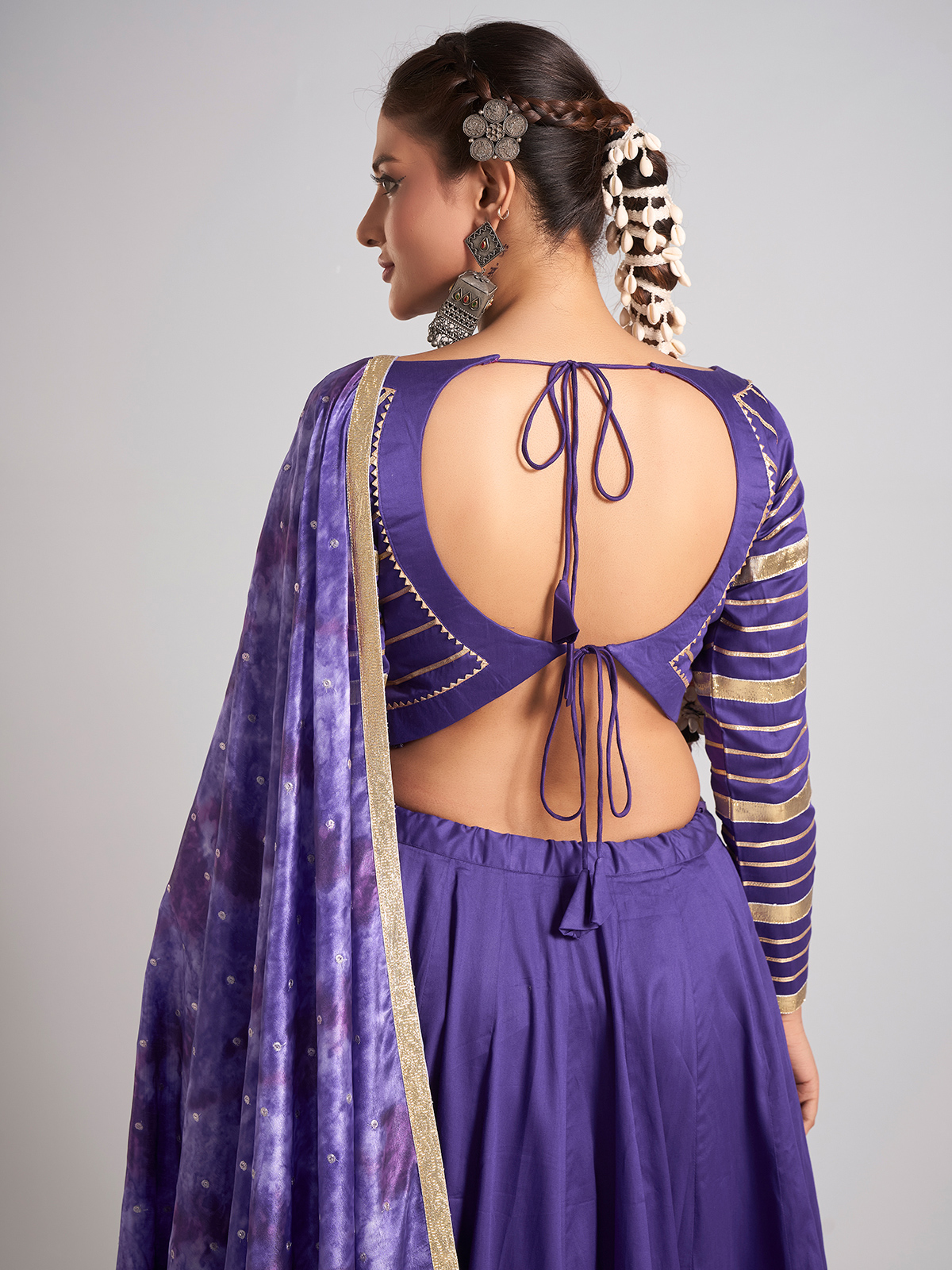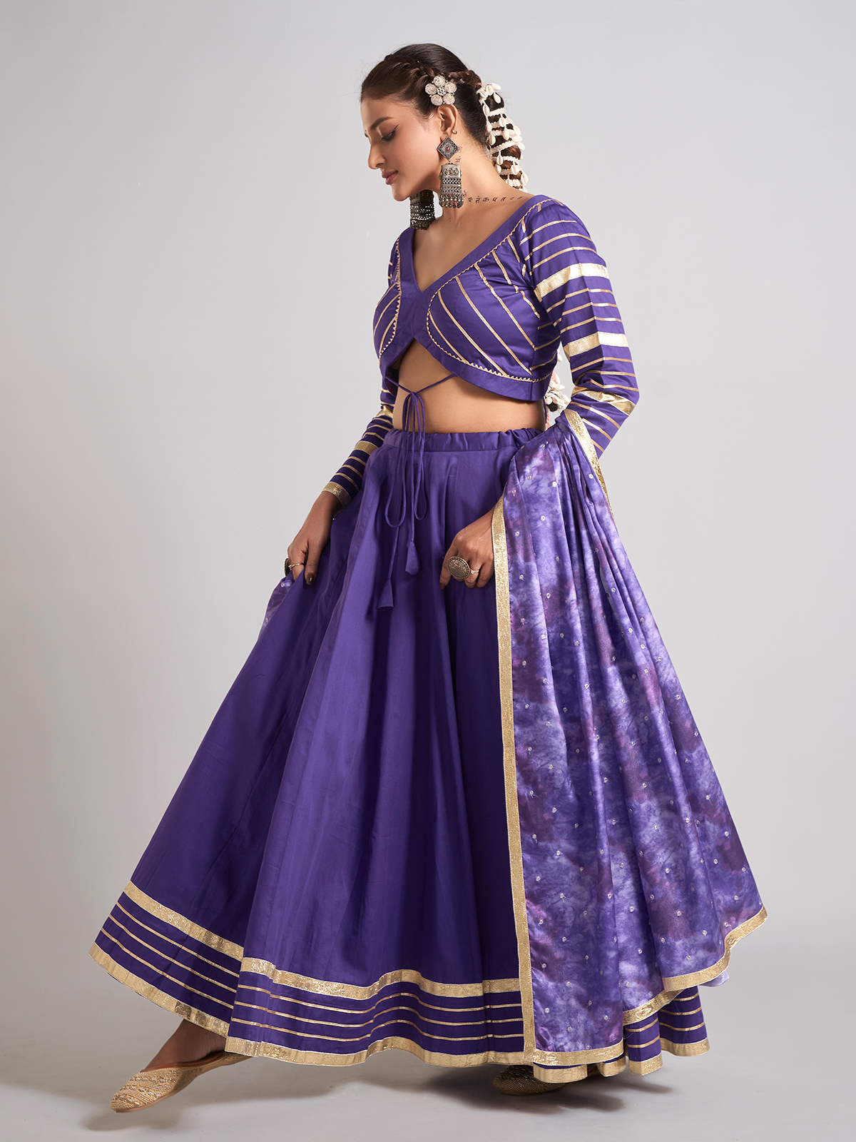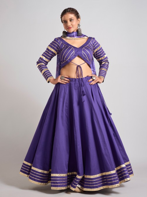 Purple Gota Work Silk Chaniya Choli For Navratri Celebrations