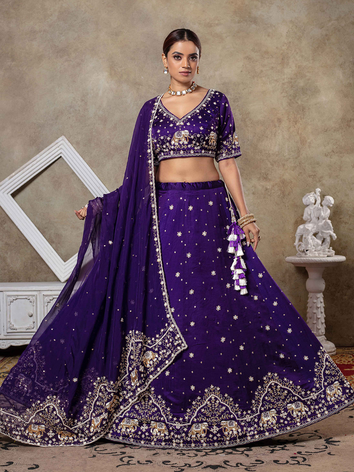 Purple Raw Silk Lehenga Choli With Dupatta Ensemble