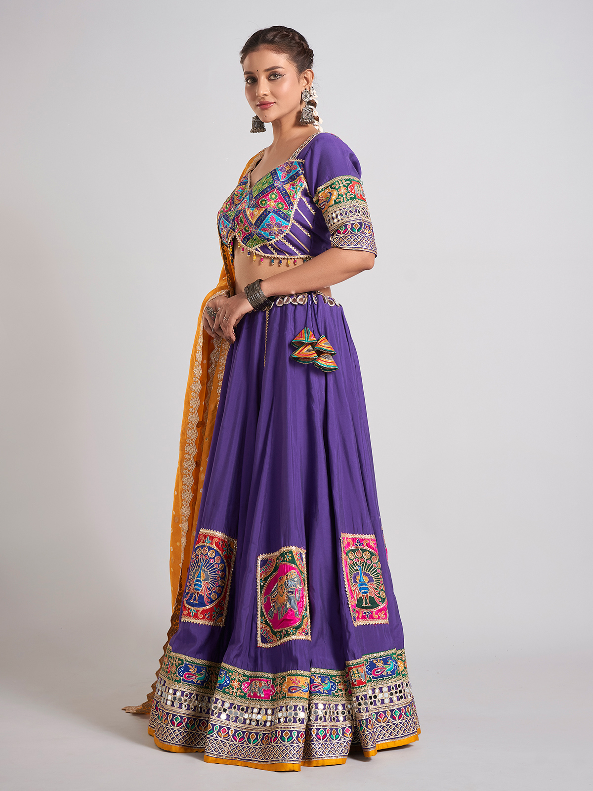 Purple Silk Mirror Work Navratri Choli