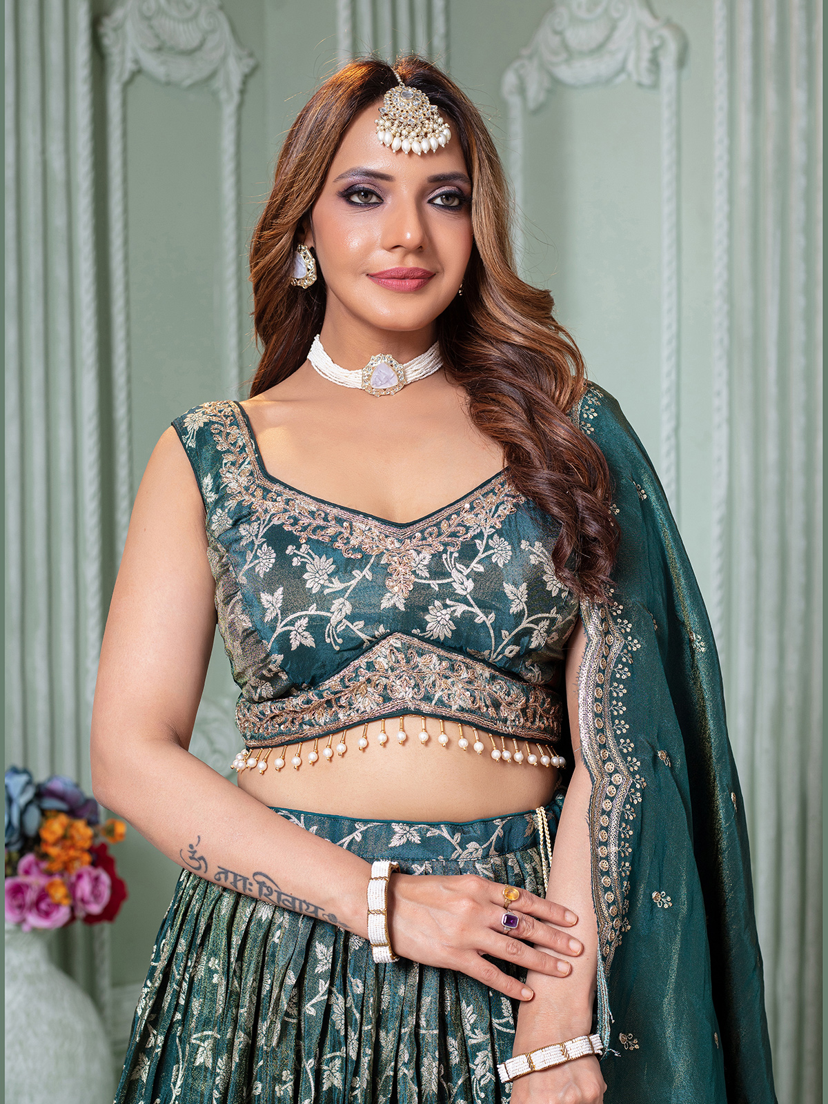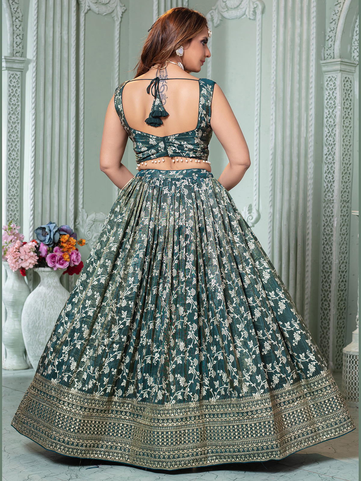 Rama Green Premium Tissue Silk Designer Lehenga Choli