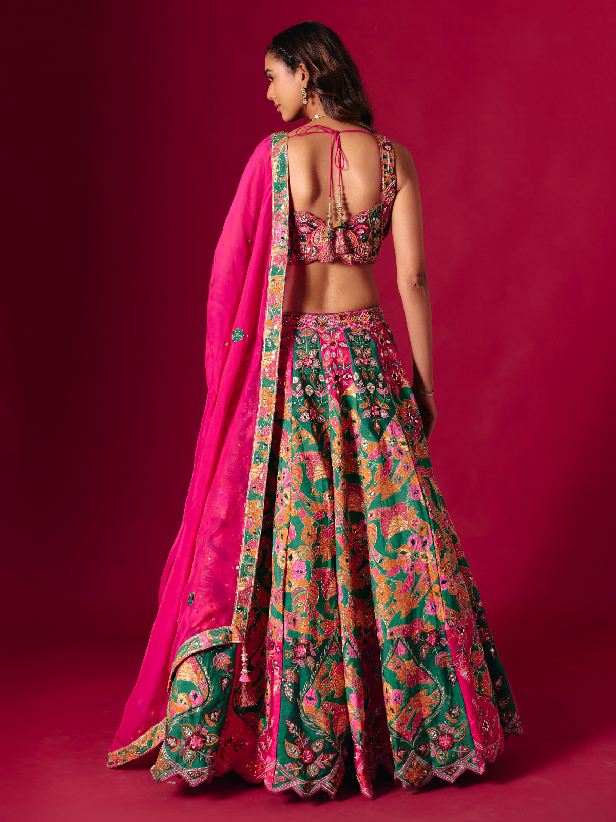 Rani Pink Raw Silk Lehenga Choli With Ornate Dupatta