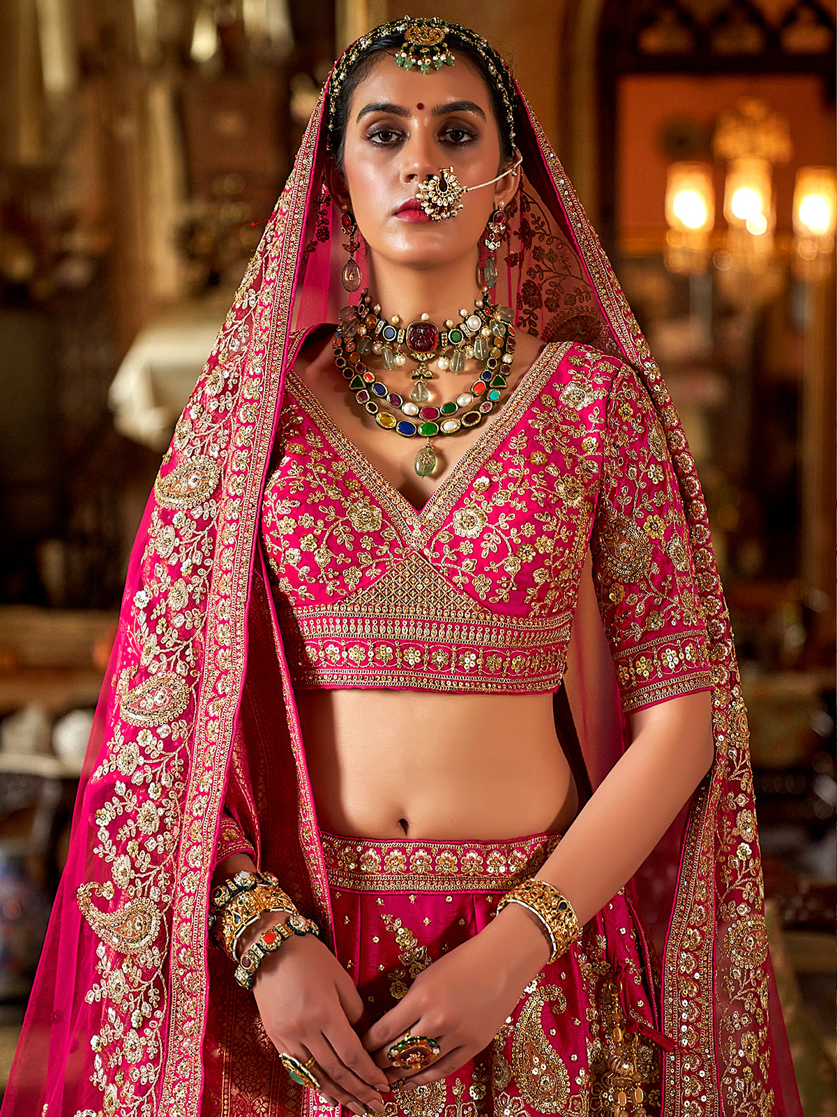 Rani Pink Silk Bridal Lehenga With Beads And Sequins