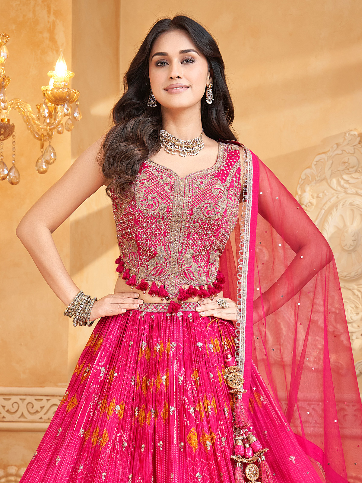 Rani Pink Silk Printed Dupatta Festive Lehenga Choli