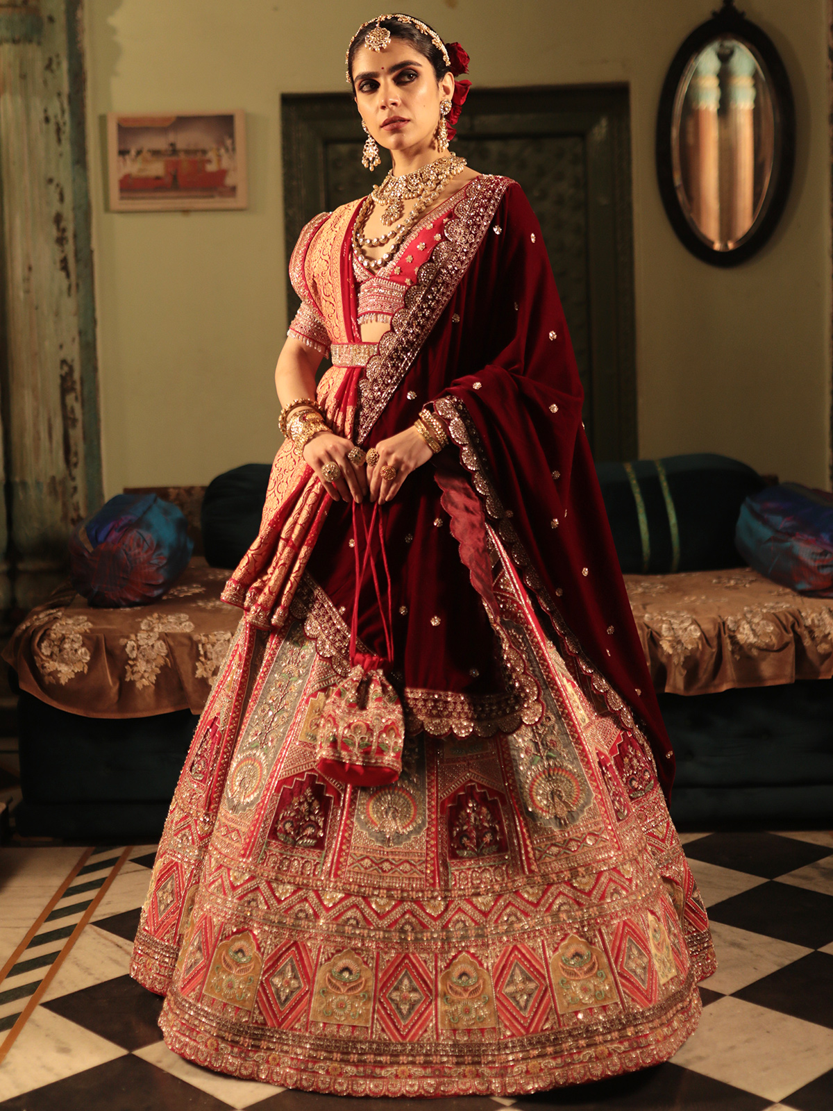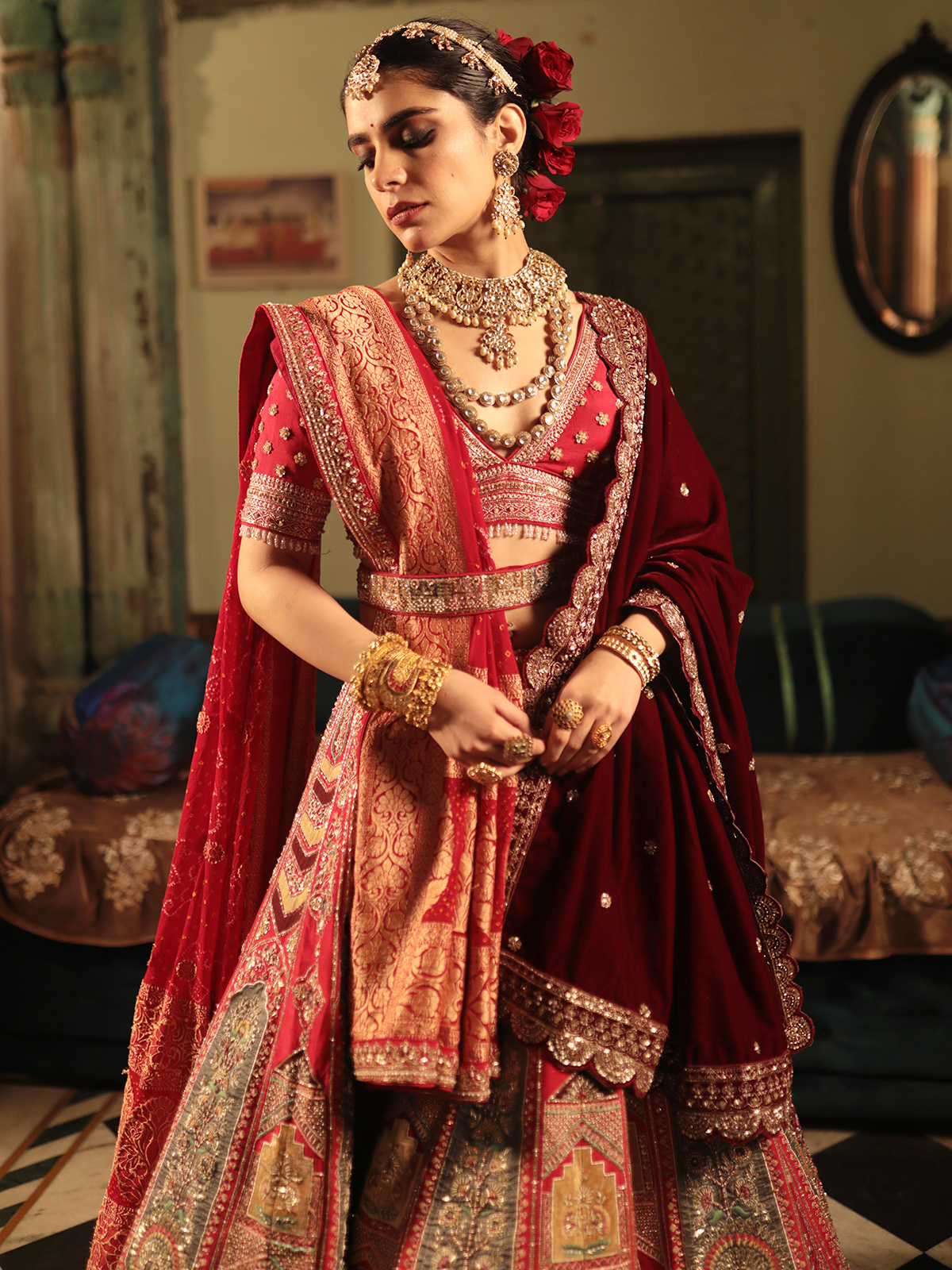 Red Raw Silk Lehenga Choli For Wedding