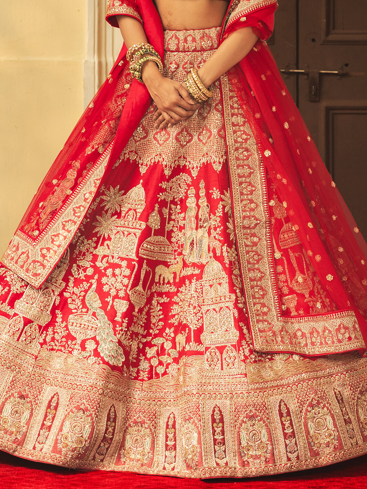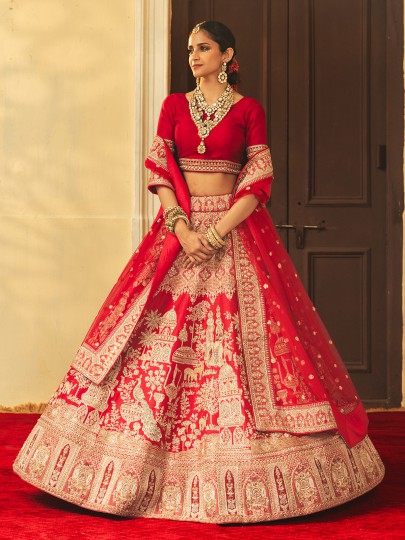 Red Raw Silk Lehenga Choli For Weddings