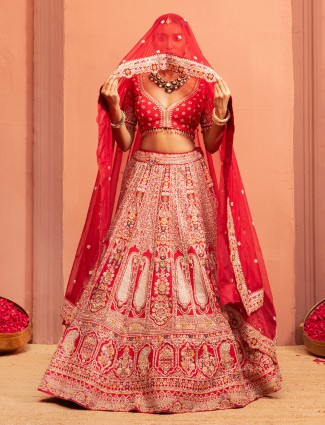 Red Sweetheart Neck Lehenga Choli For Wedding