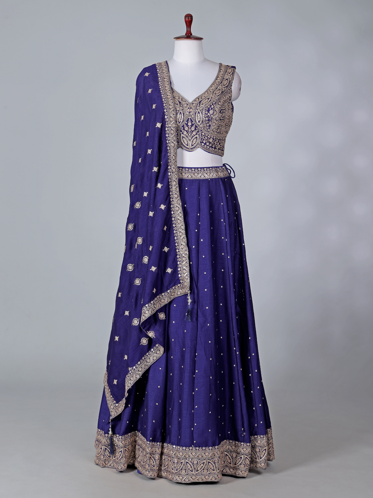 Royal Blue Silk Sweetheart Neck Lehenga Choli