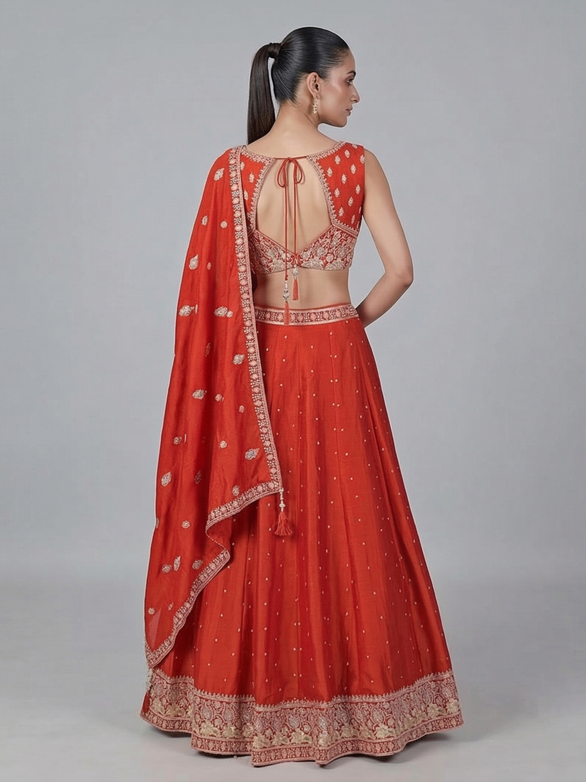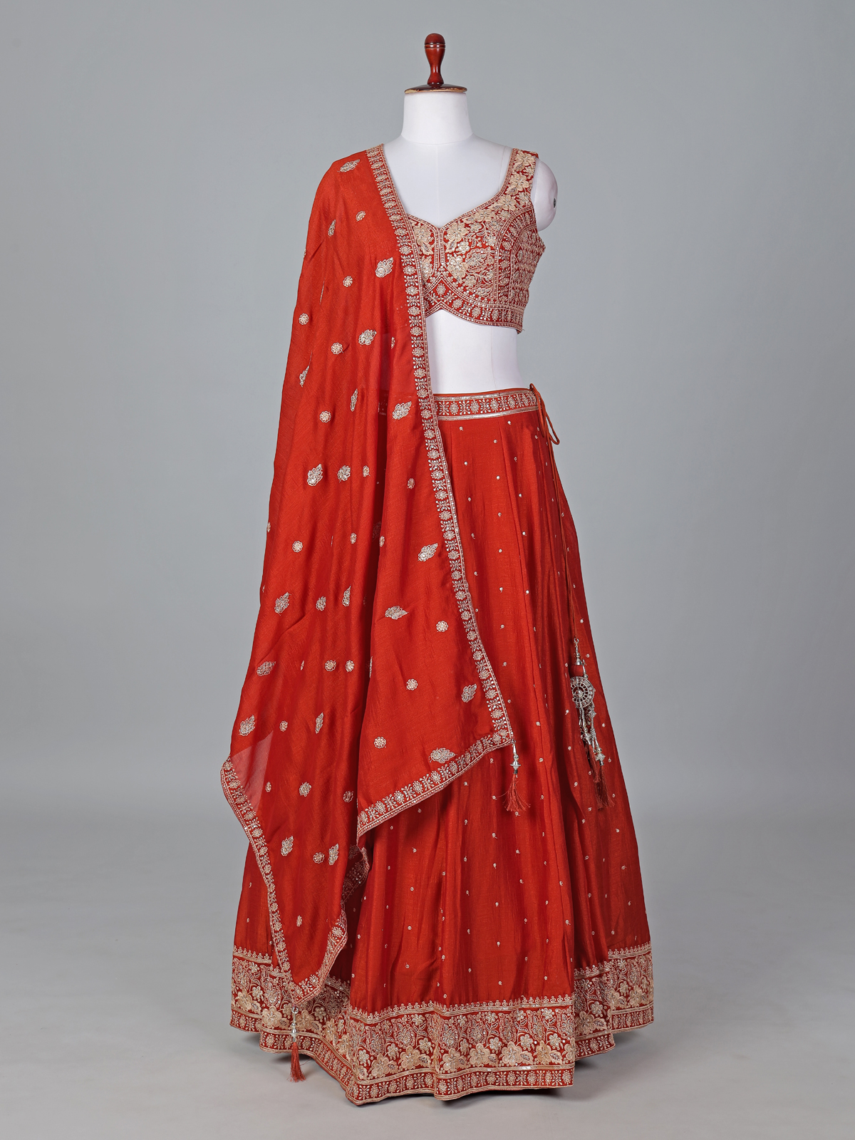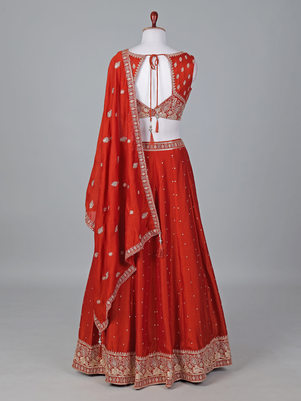 Rust Orange Silk Lehenga Choli With Embroidered Detailing