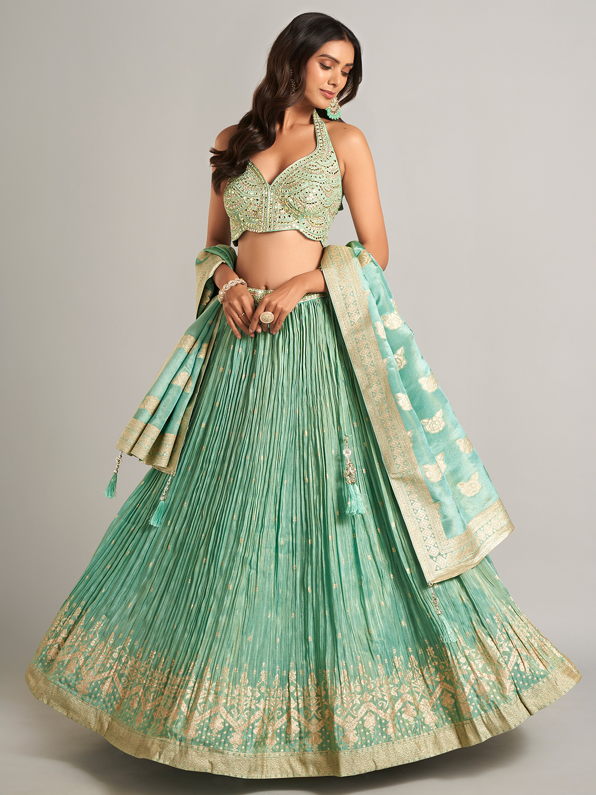 Trendy Pista Green Lehenga Choli