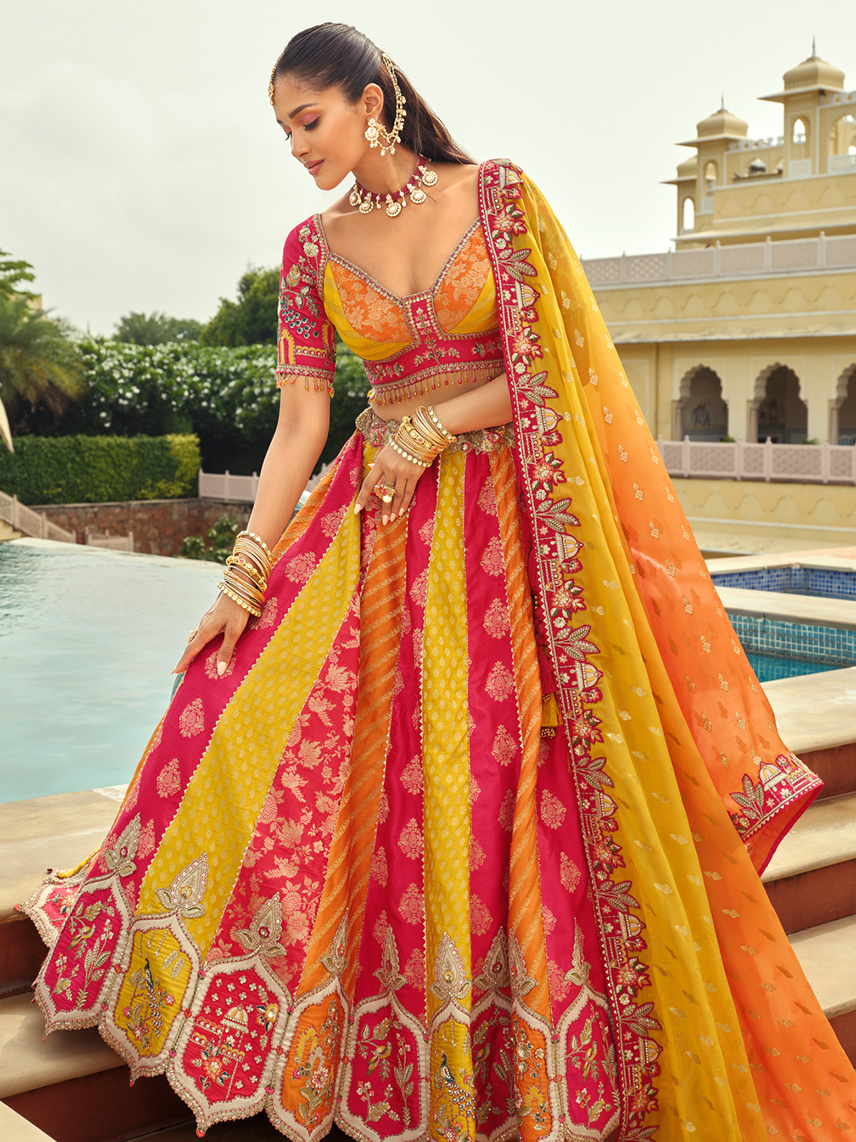 Vibrant Multicolor Wedding Silk Lehenga Choli