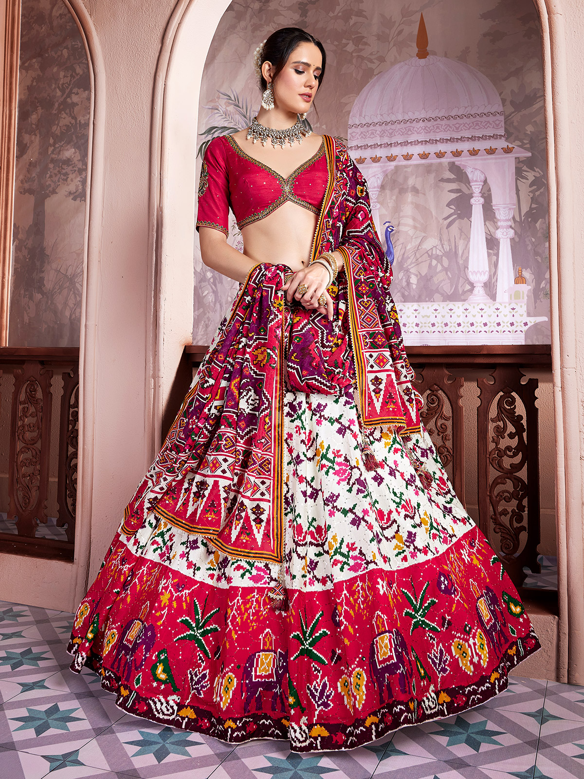 White Patola Printed Patola Silk Lehenga Choli