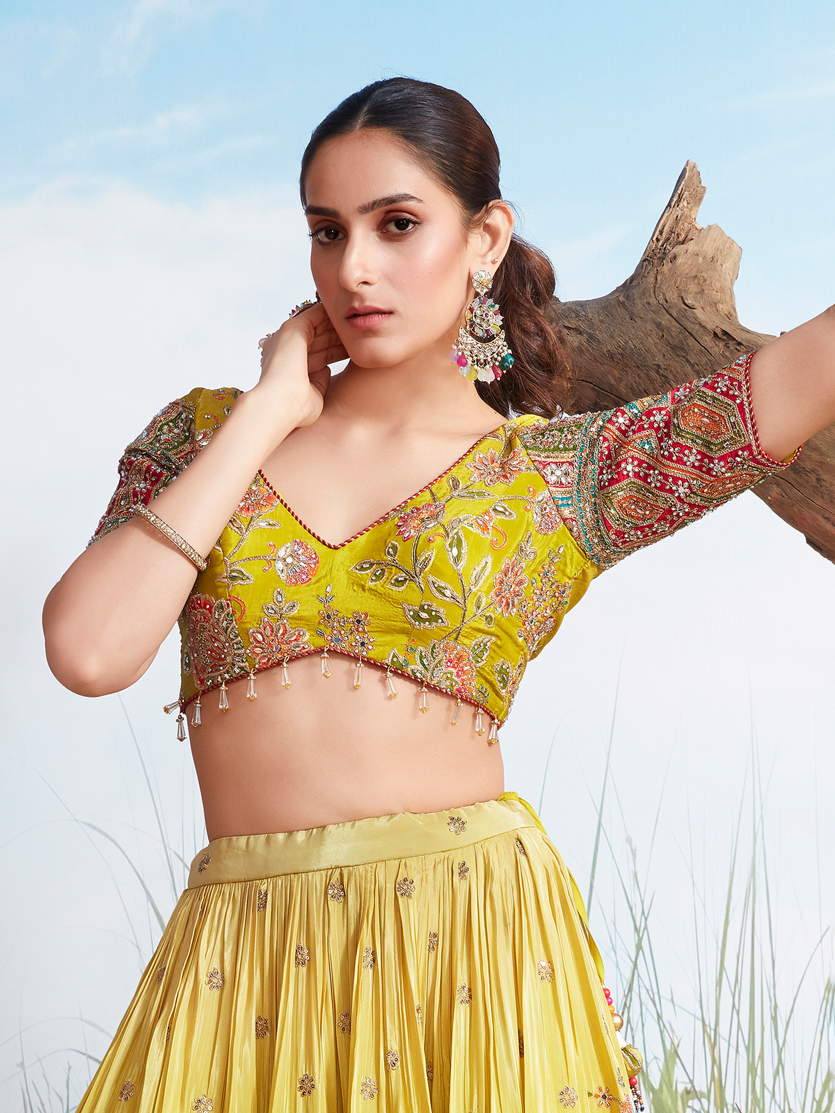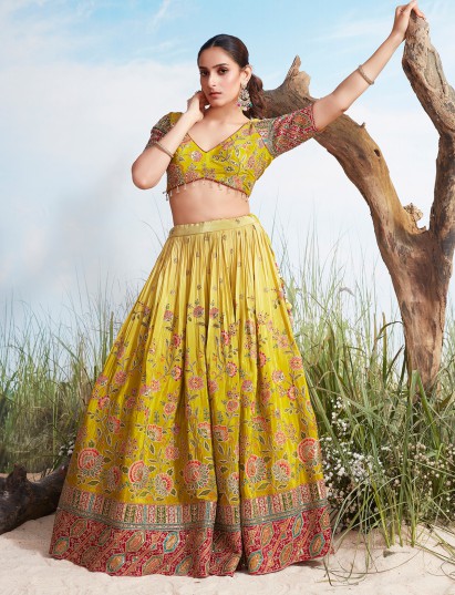 Yellow Shaded Silk Lehenga Choli With Vibrant Print