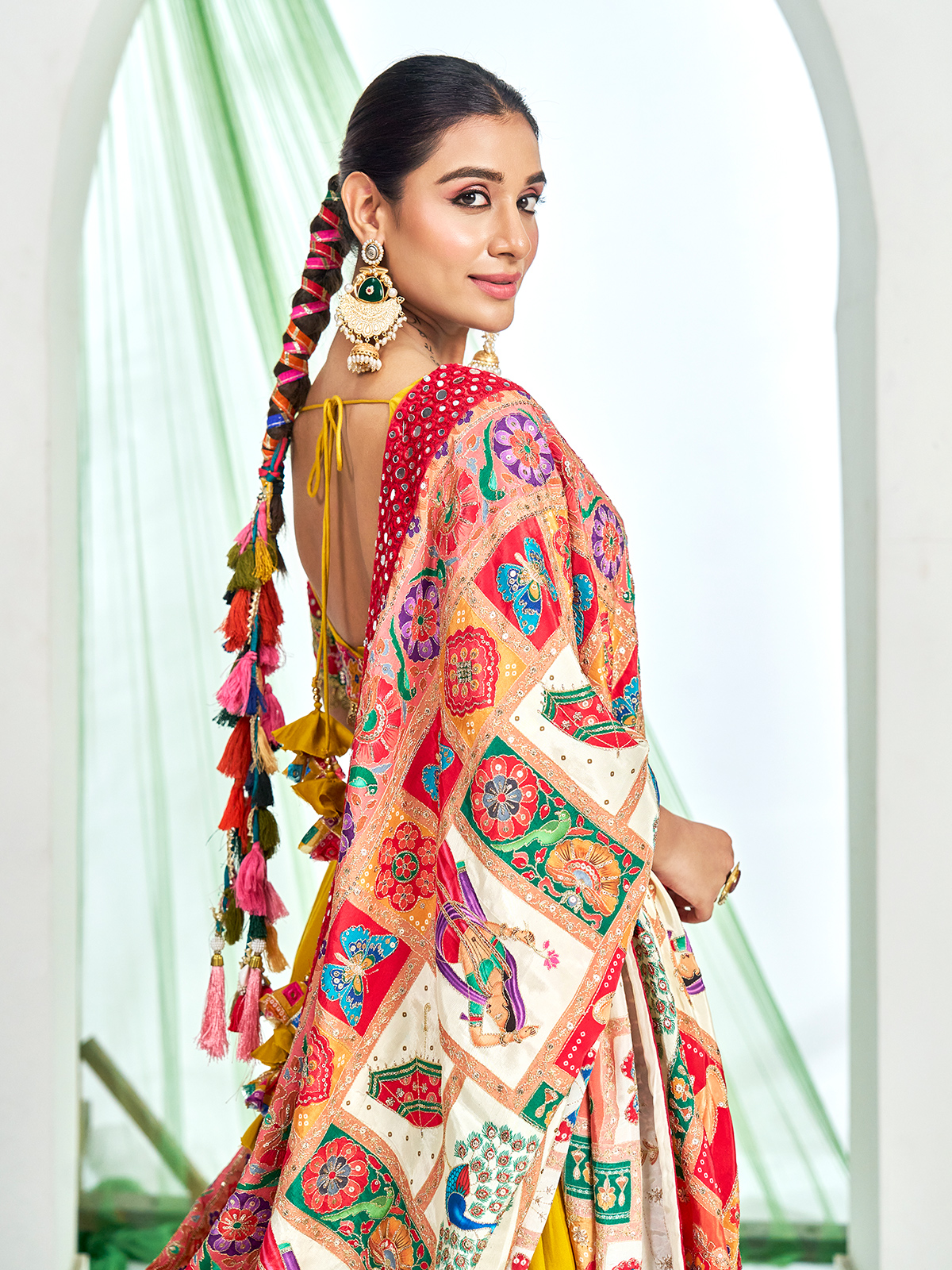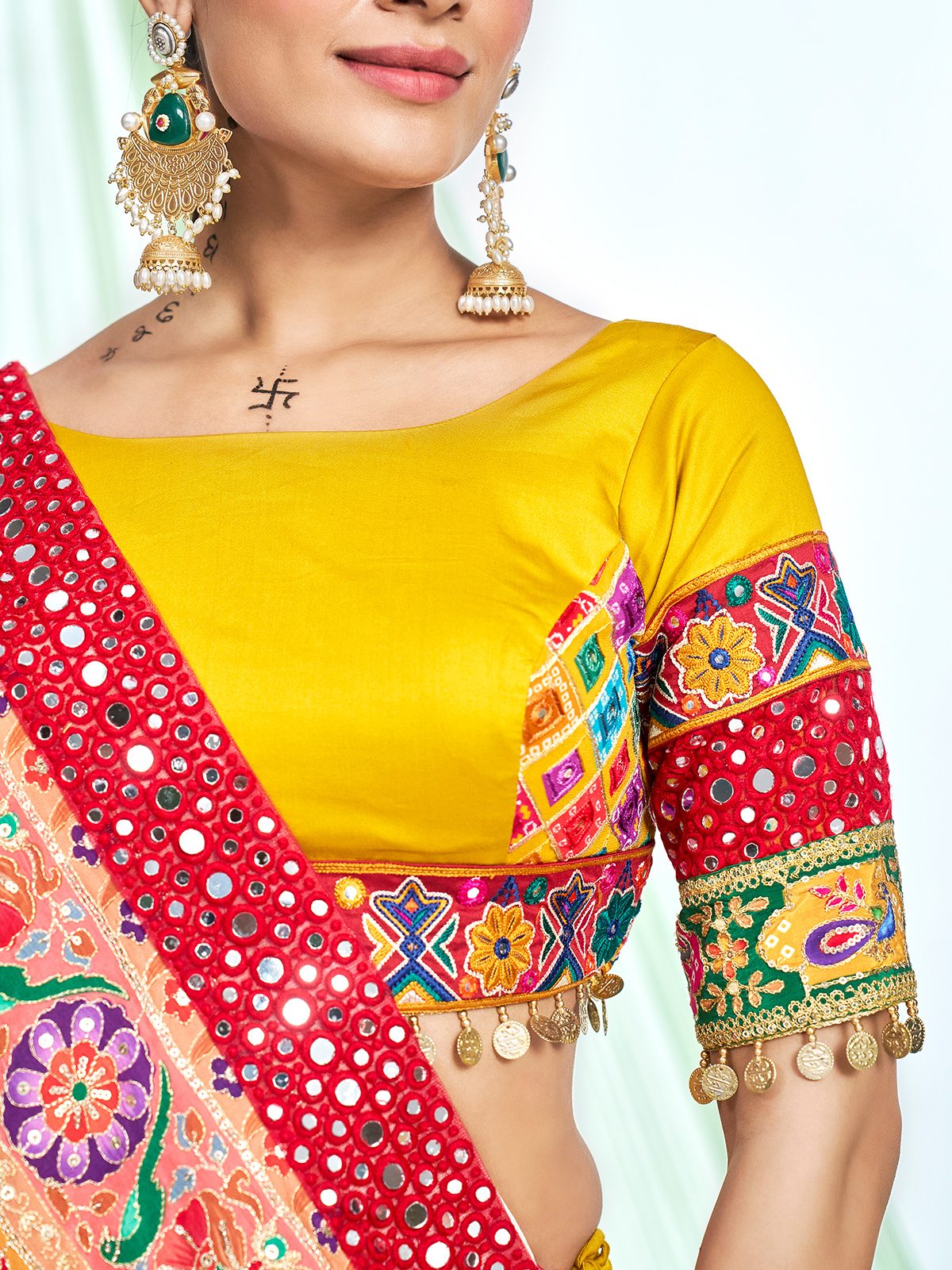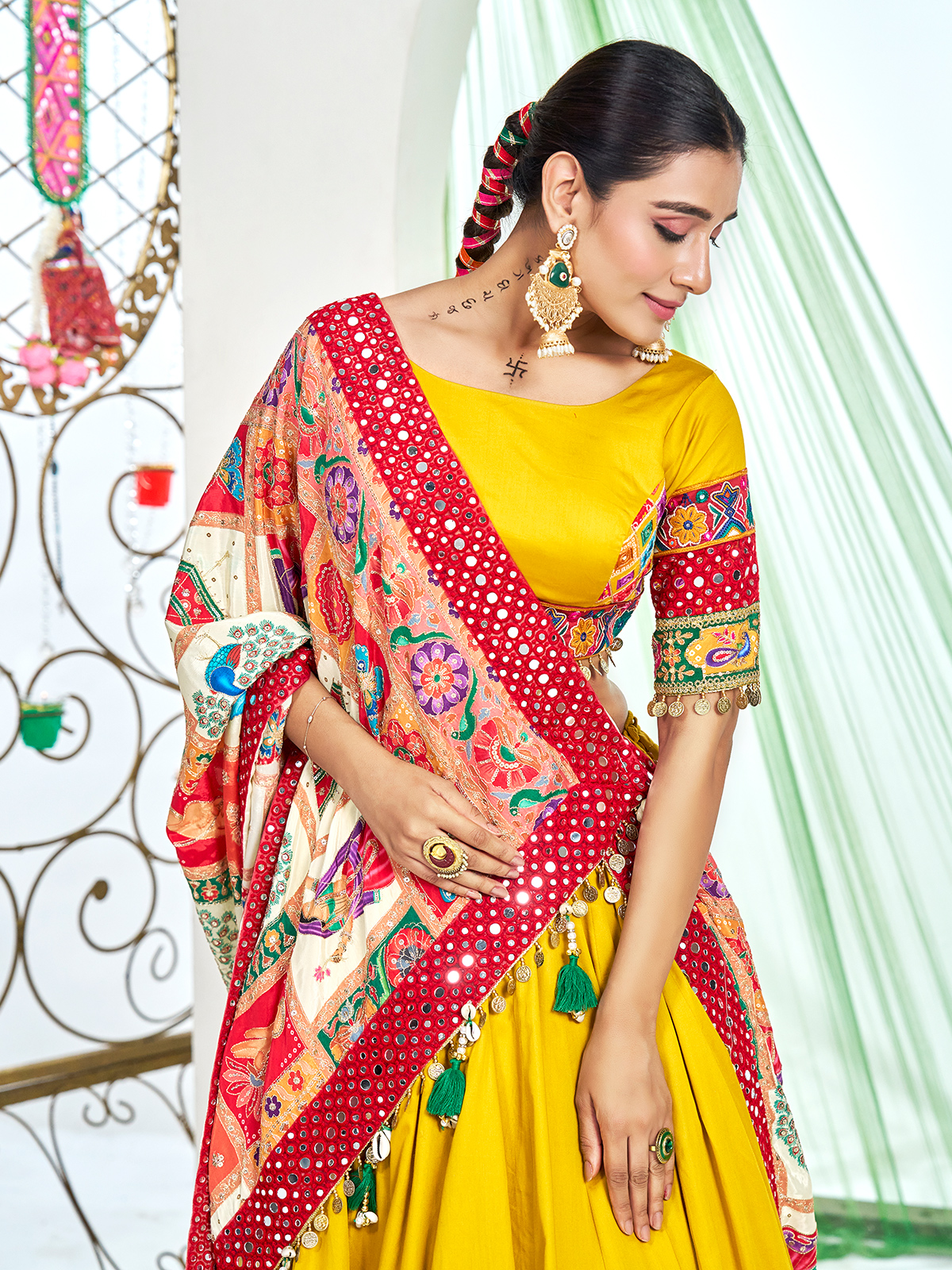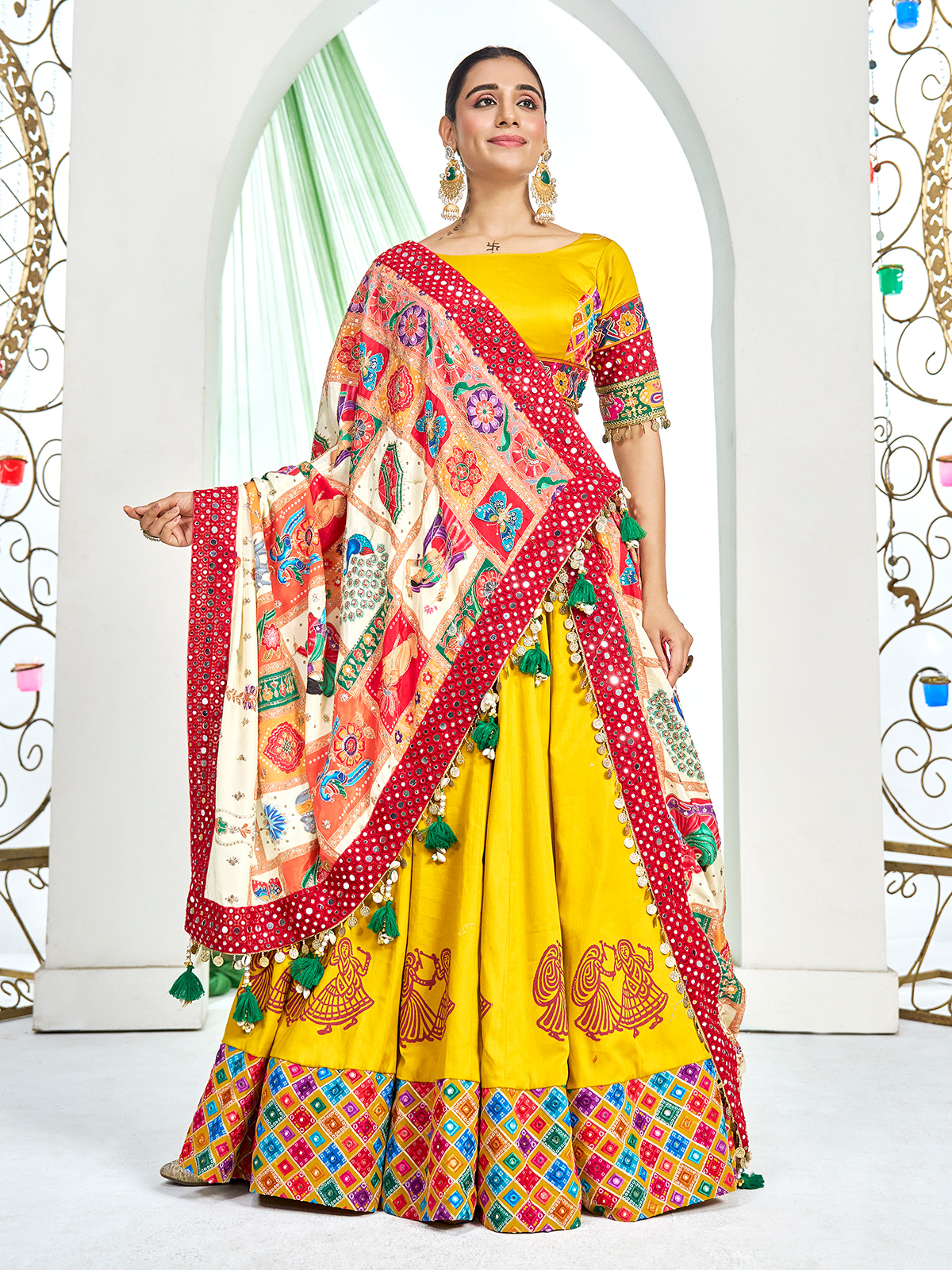 Yellow Silk Navratri Lehenga Choli With Bold Dupatta Design