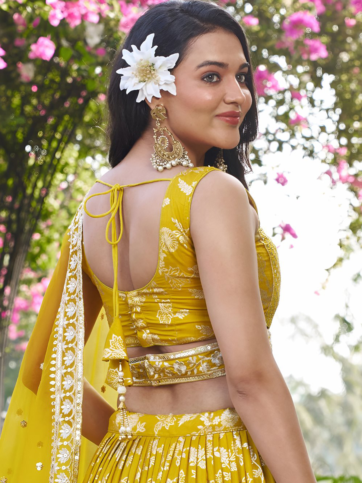 Yellow Unstitched Lehenga Choli Haldi Ceremony Wear