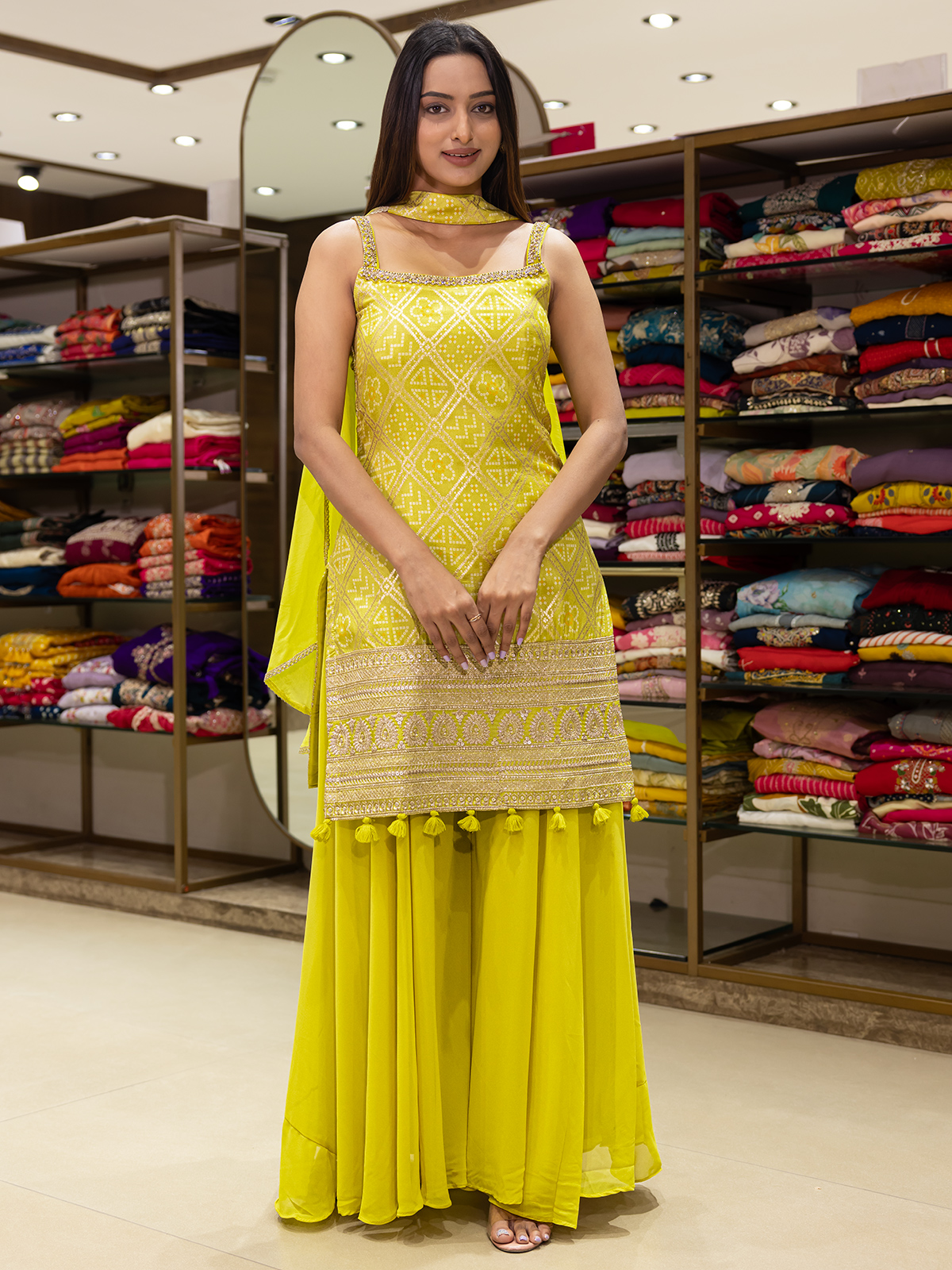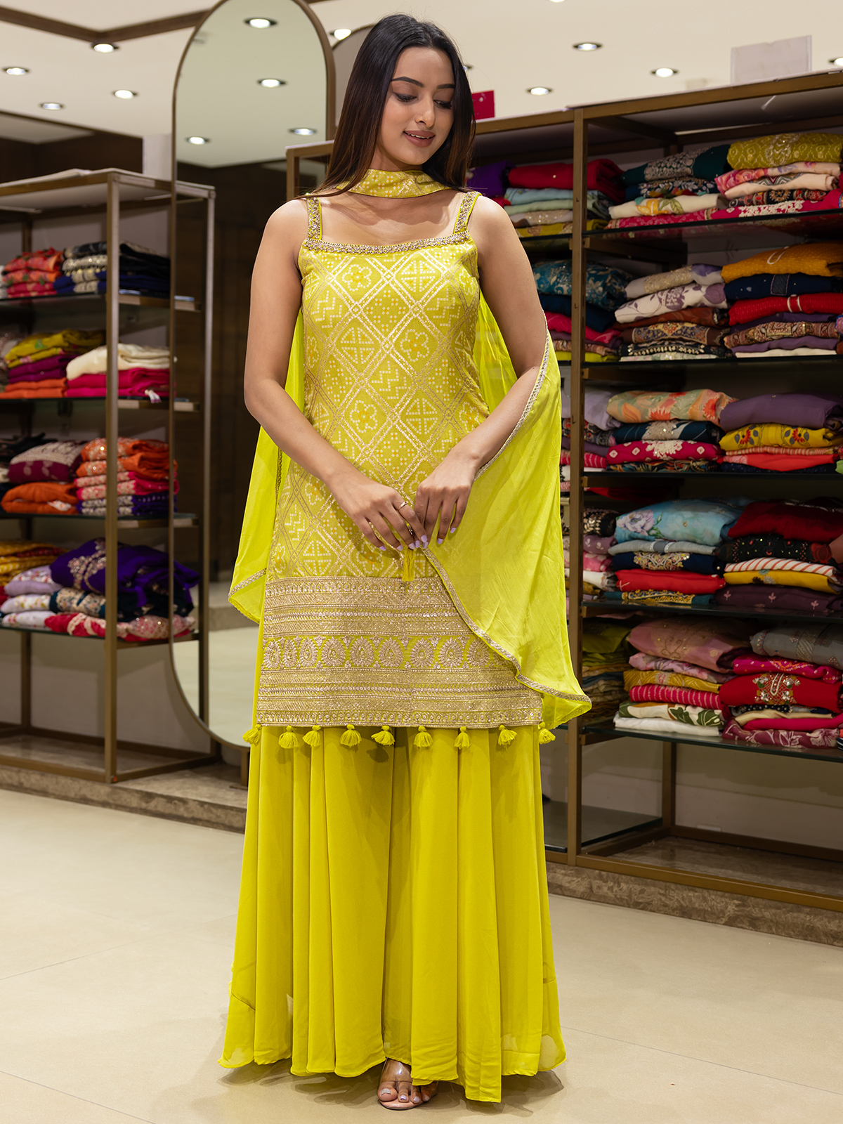 Lime Yellow Printed Palazzo Suit