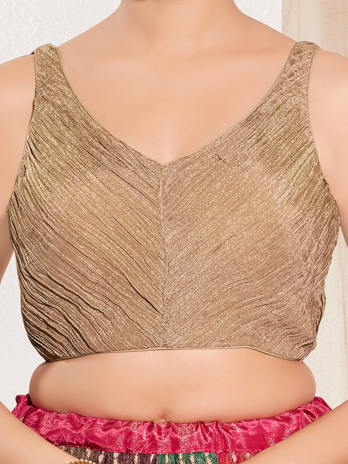 Beige Tissue Silk Sweetheart Neck Festive Blouse