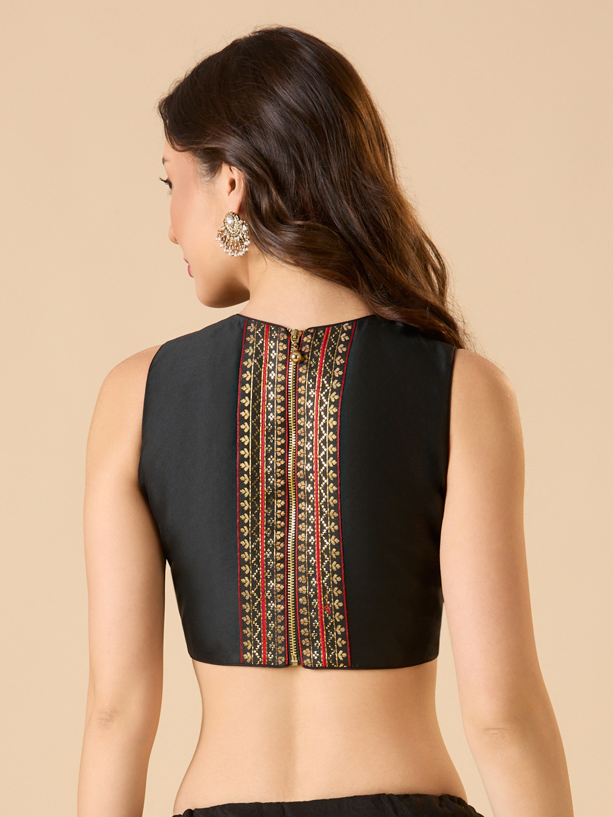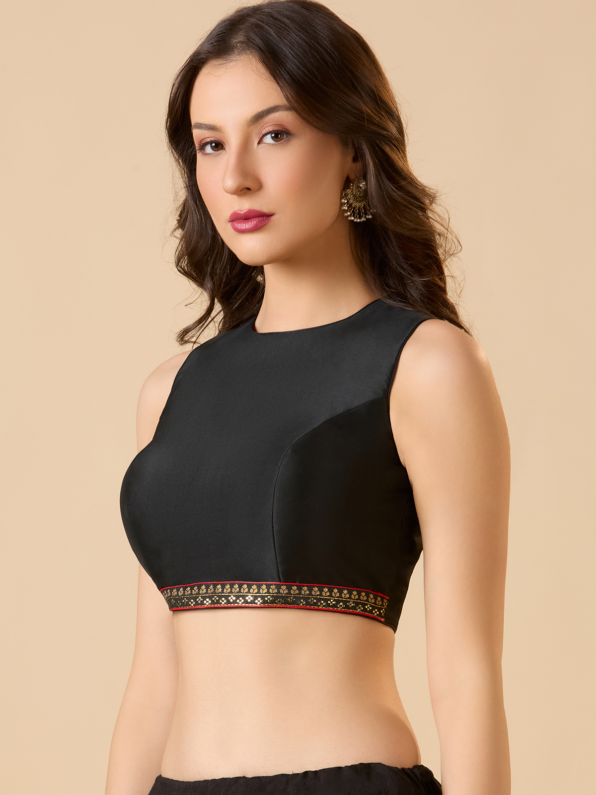 Black Taffeta Zari Thread Boat Neck Ready Blouse