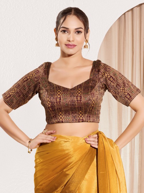 Elegant Maroon Jacquard Pre Stitched Blouse