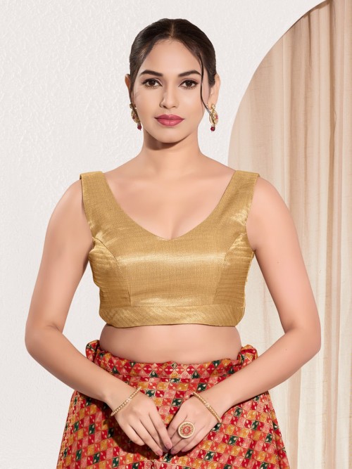 Golden Silk Ready Made Blouse With Zari Weaving